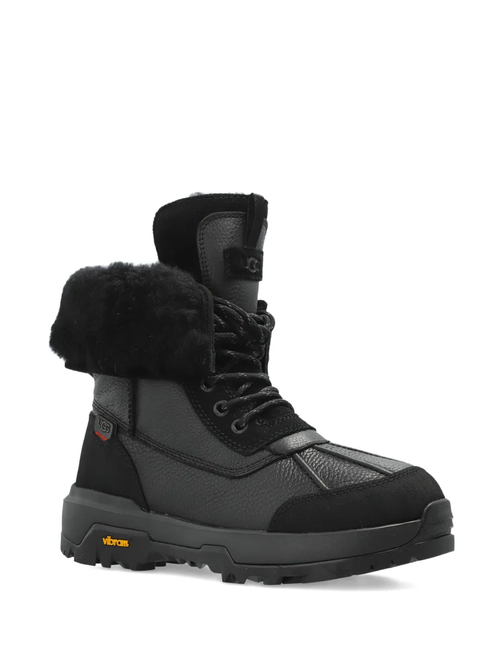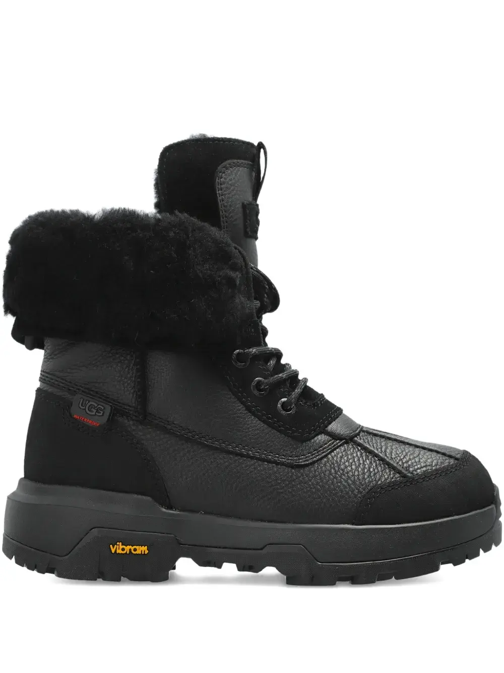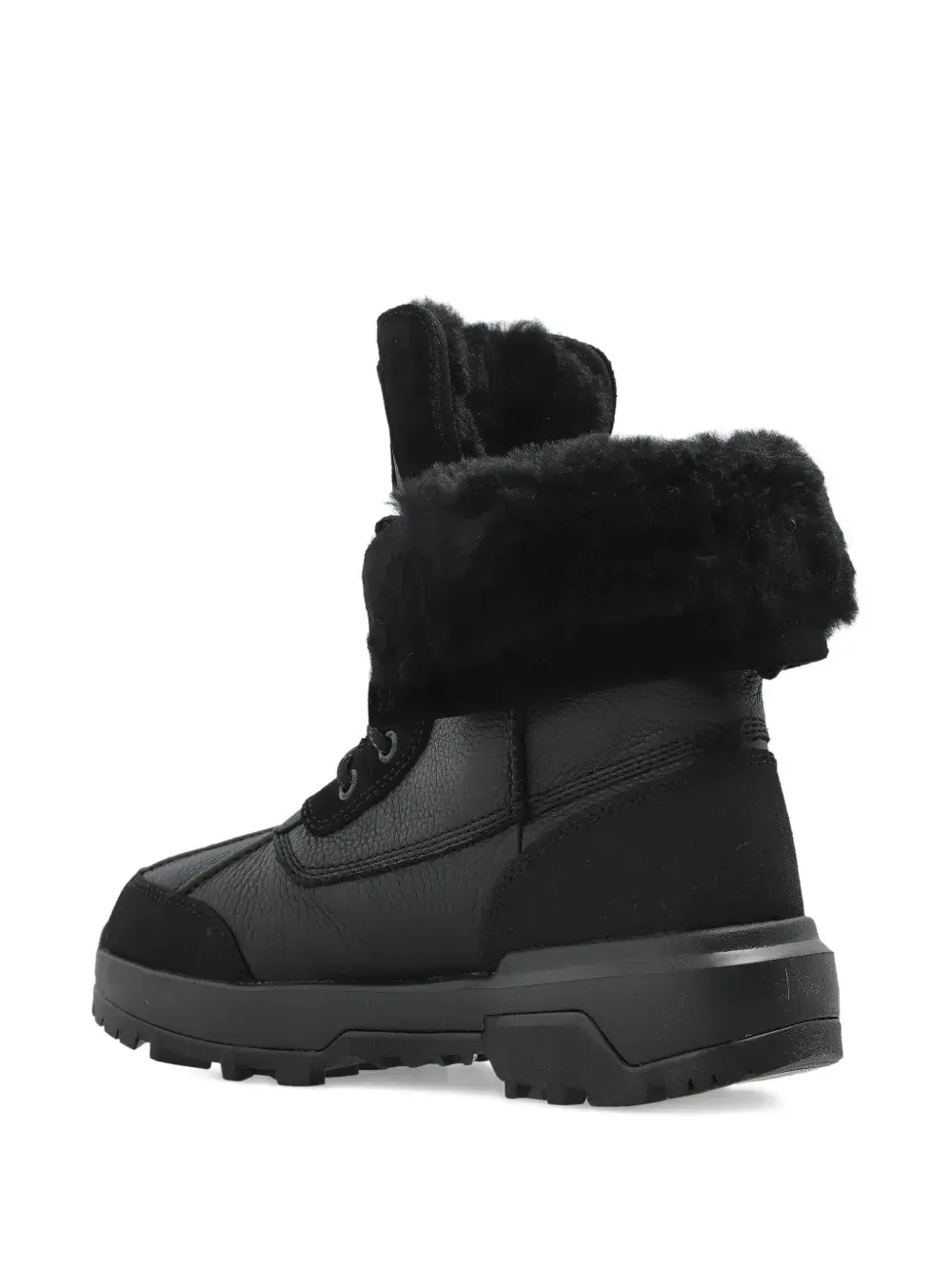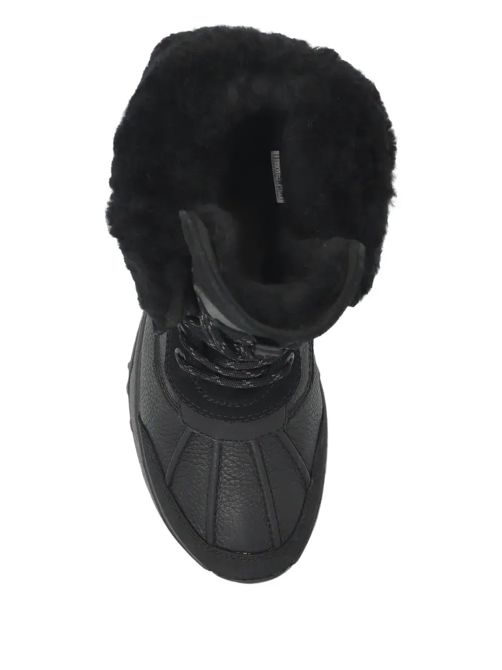 Черная отделка из овчины, шнуровка, круглый нос, рифленая резиновая подошва, нашивка с логотипом