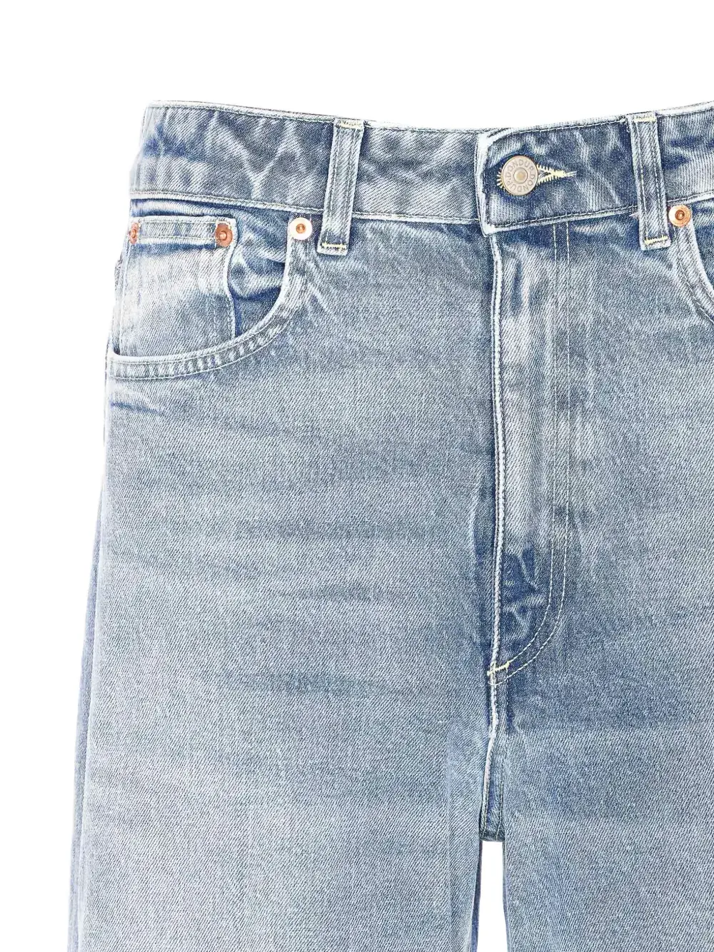 Синие классические пять карманов нашивка с логотипом застежка на молнию и пуговицу шлевки для ремня