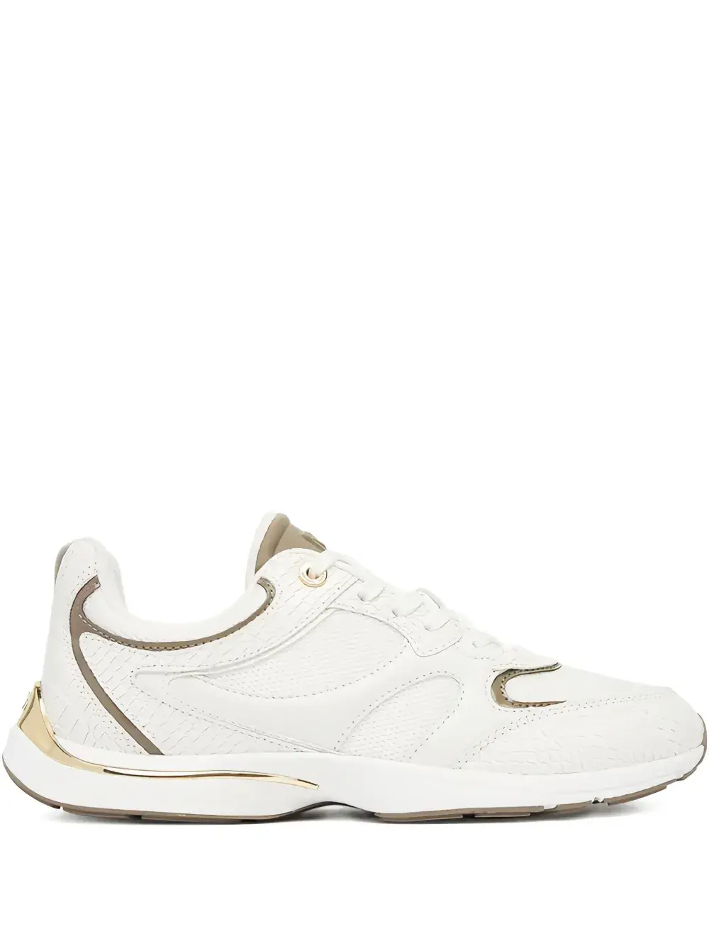 Белая имитация зминой кожи, золотистые детали, шнуровка, круглый нос, резиновая подошва