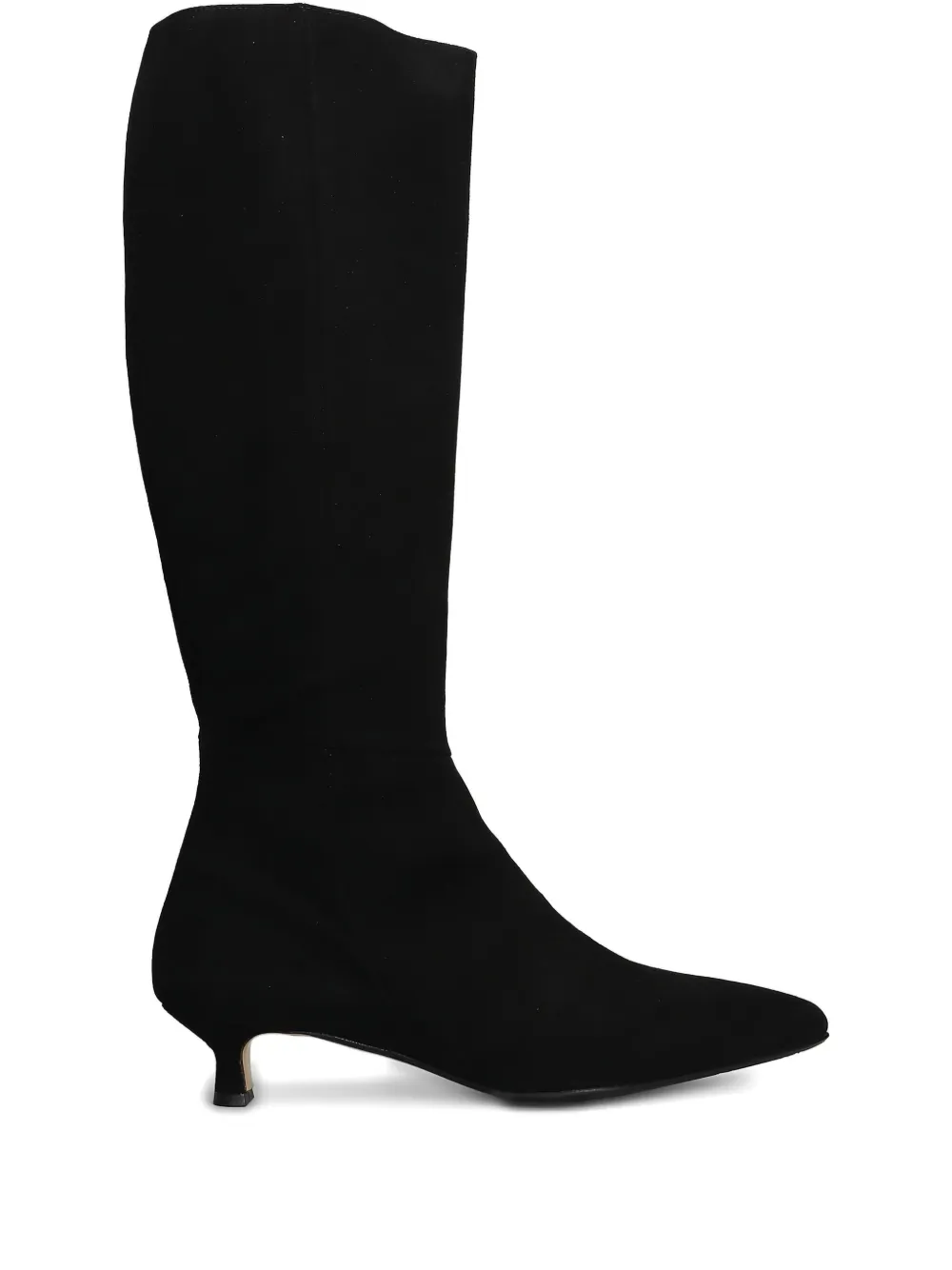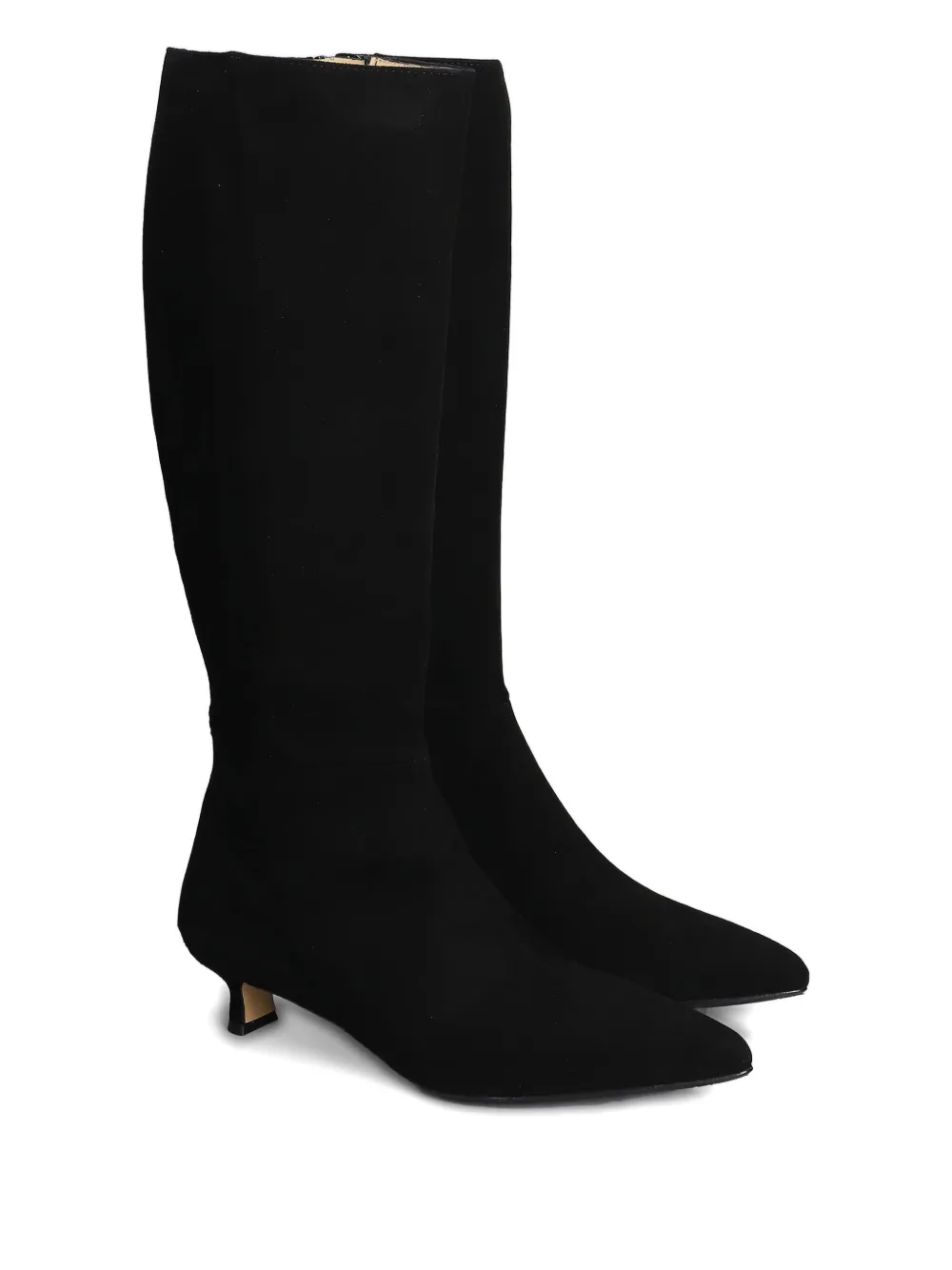Черные ботфорты на низком каблуке с застежкой-молнией
