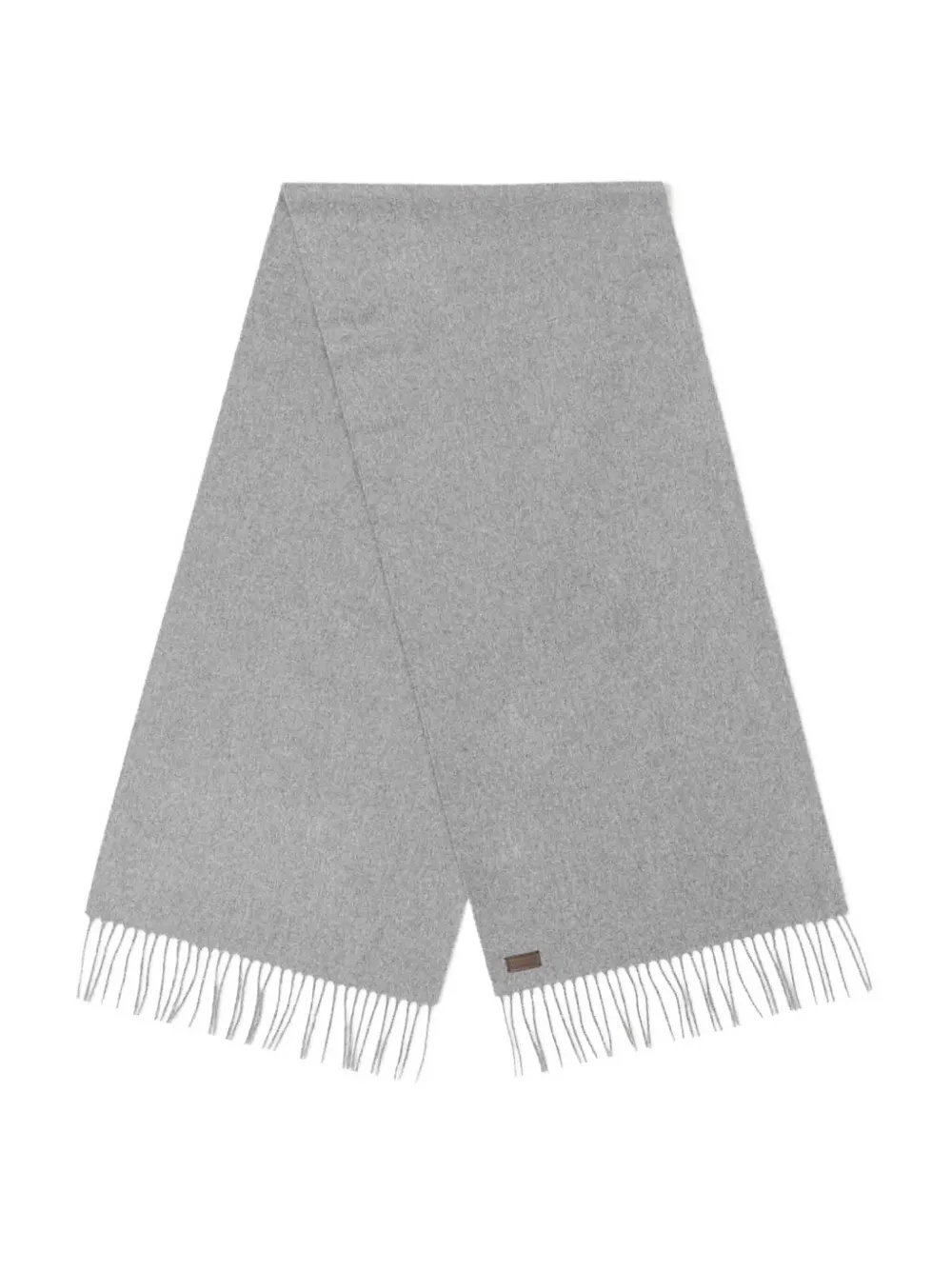 Серый кашемир с бахромой по краю и нашивкой с логотипом