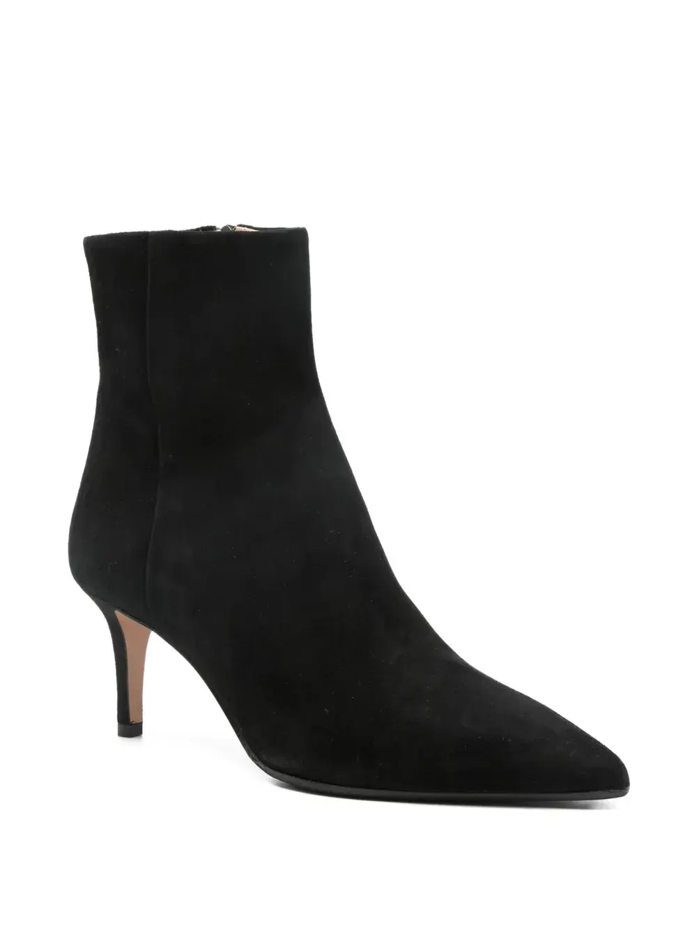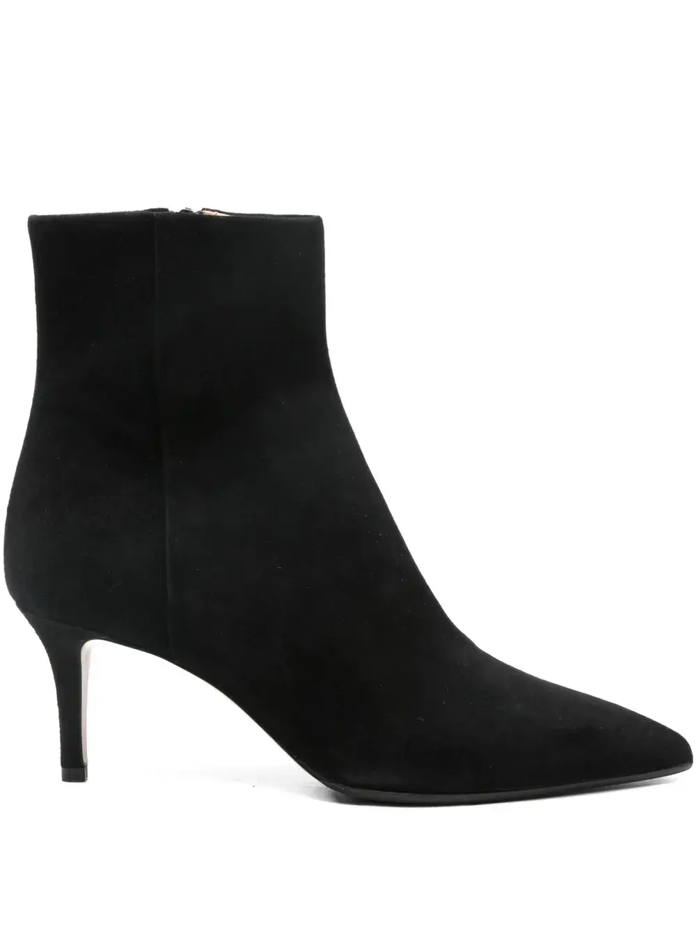 Черные ботильоны на шпильке с заостренным носком, застежкой-молнией и длиной до щиколотки