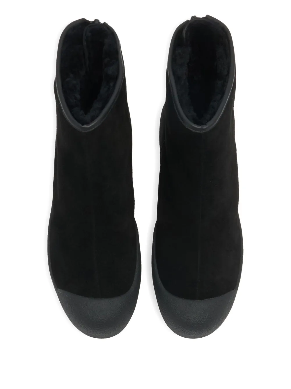 Черная замша, текстура, застежка-молния сзади, круглый носок, платформенная подошва, высота до щиколотки