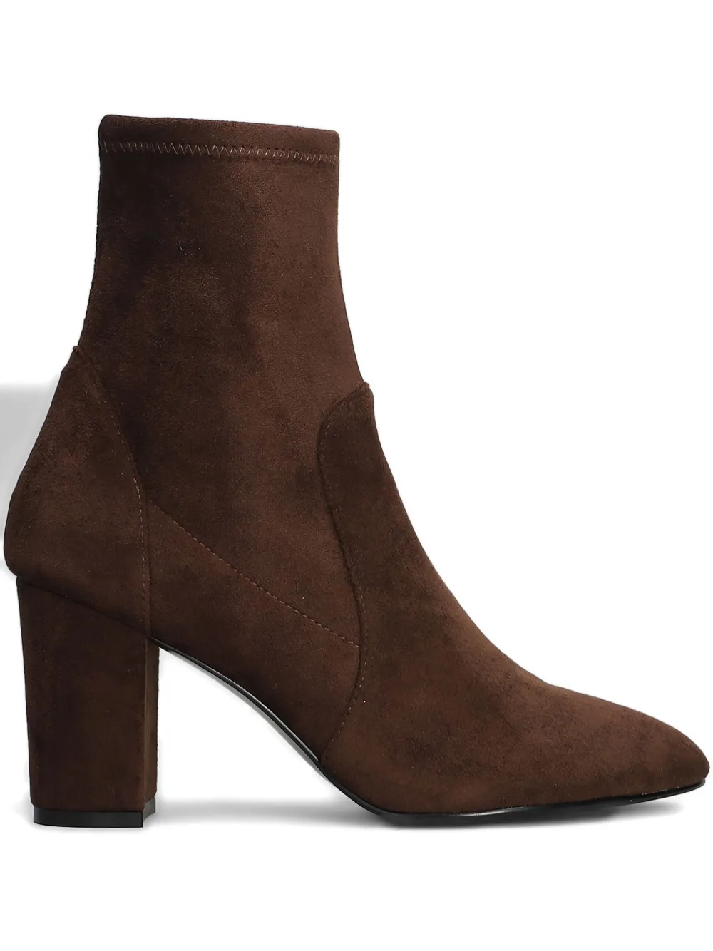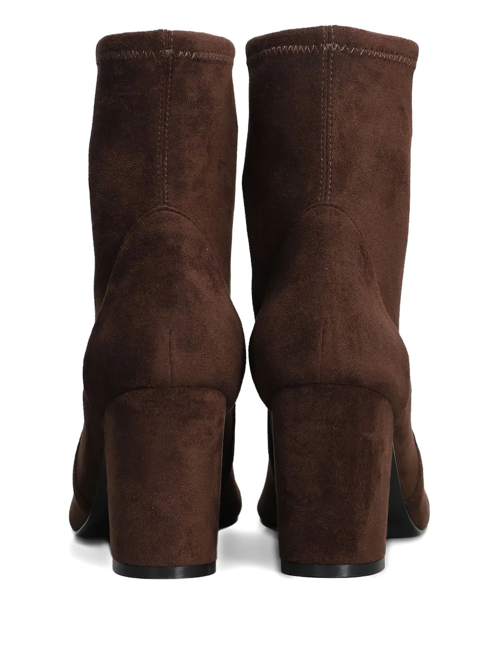 Коричневые ботильоны на блочном каблуке с заостренным носком, длина до щиколотки, без застежки, с эластичными вставками