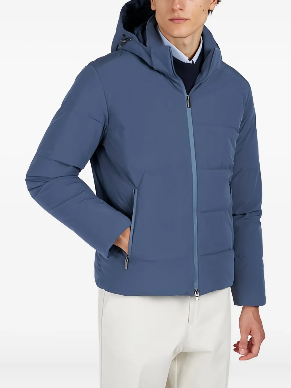 Индиго, стеганая отделка в стиле channel, съемный капюшон, застежка-молния, карманы на молнии, технология Typhoon Re-4X4