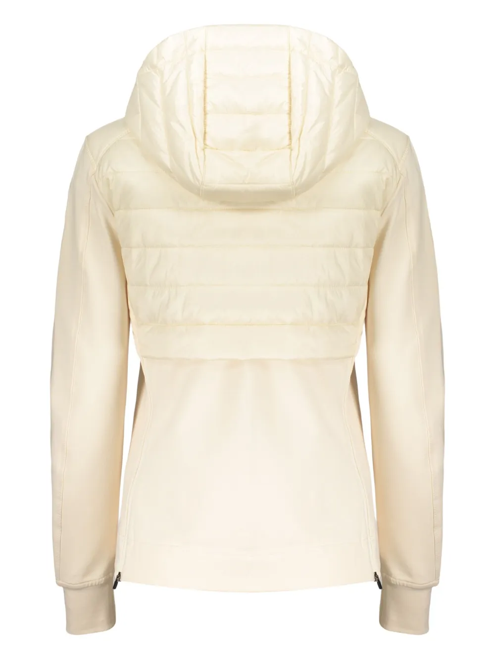 Светло-бежевый стеганый с застежкой на молнии, длинными рукавами и капюшоном