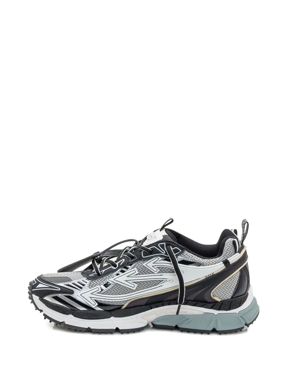 Серый и черный с мотивом стрелы, шнуровка, петля на пятке, рифленая подошва из резины, многослойный дизайн