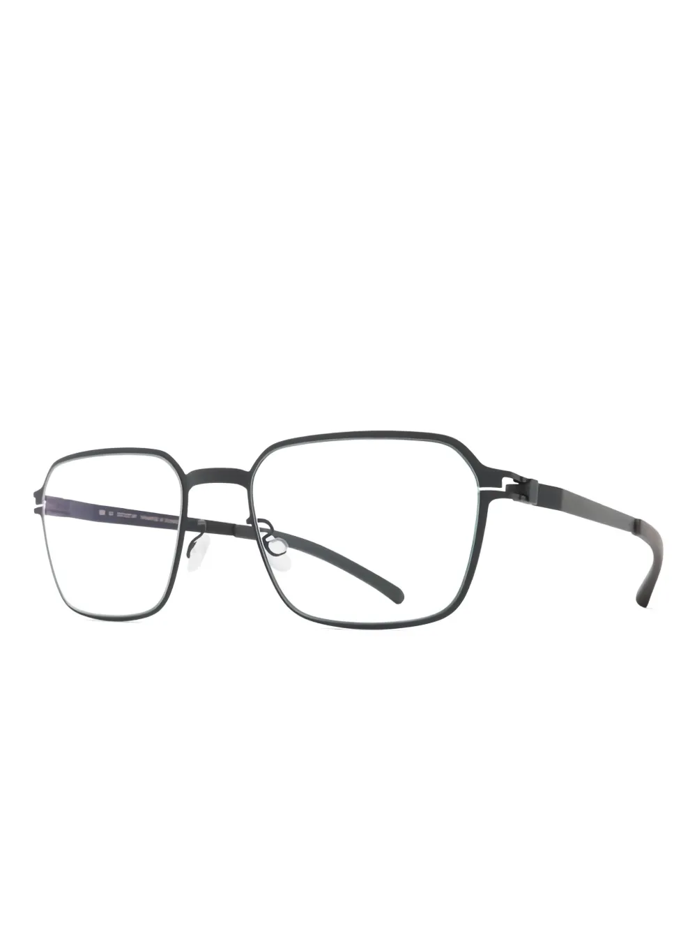 Штормово-серые квадратные оправы, носоупоры, прямые дужки, изогнутые кончики дужек. Эти очки поставляются с защитным футляром. Все очки на FARFETCH продаются как оправы без диоптрий.