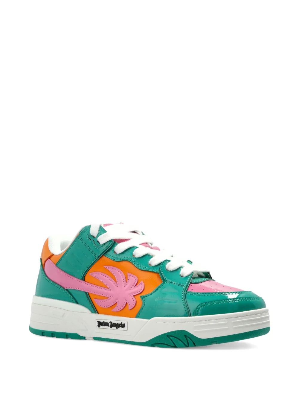 Верх из зеленой кожи, отделка в виде пальмы, шнуровка, тисненый черный логотип