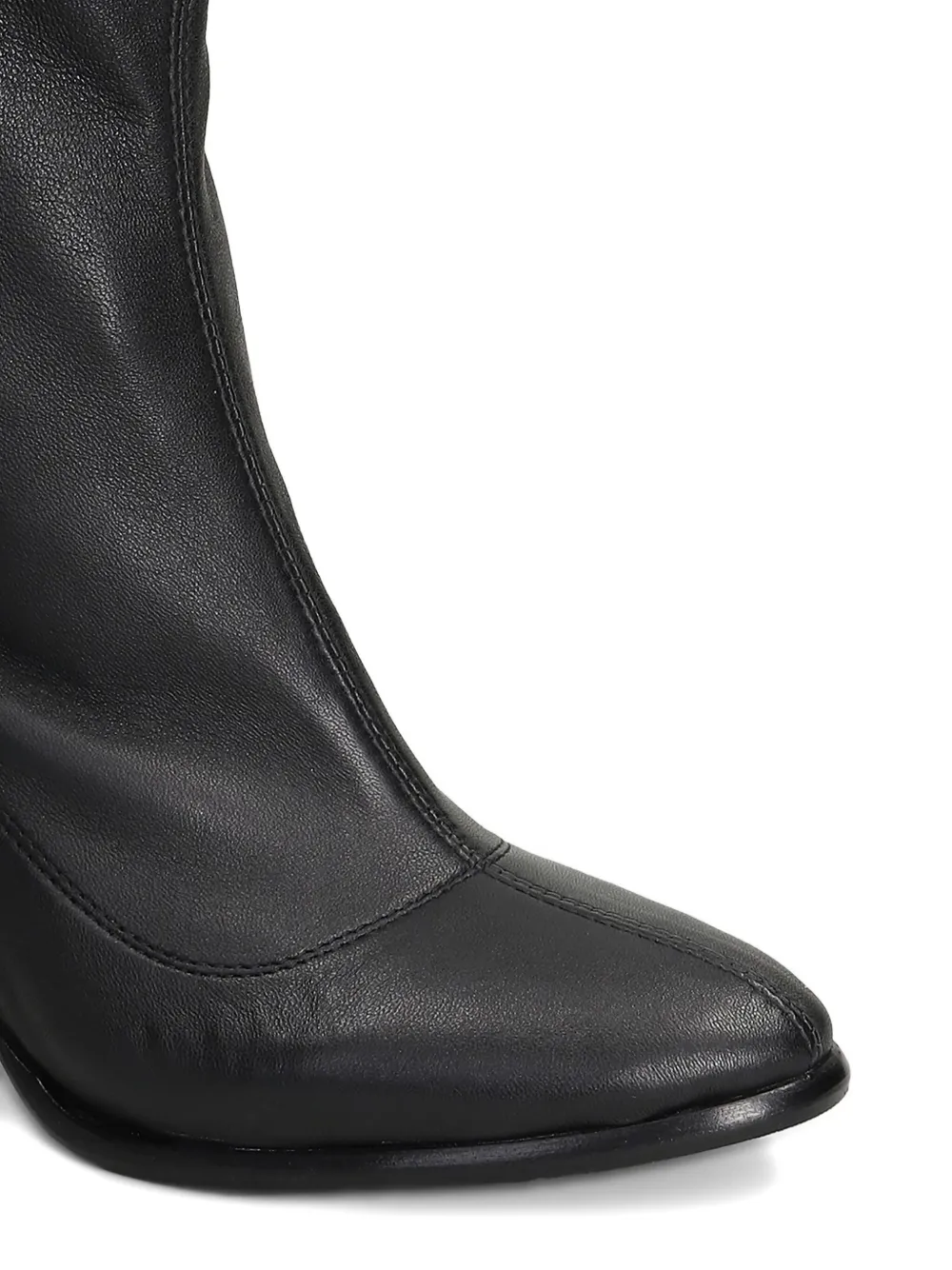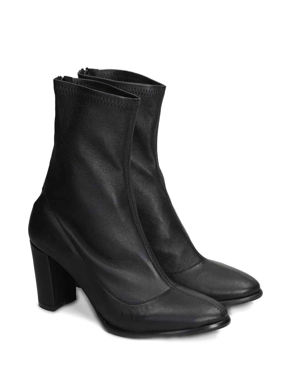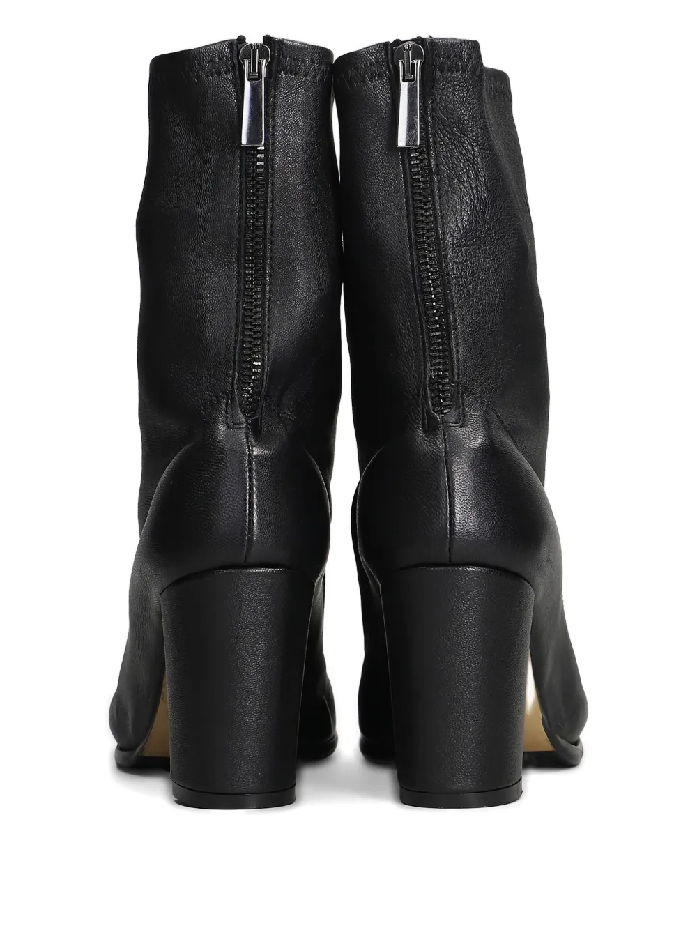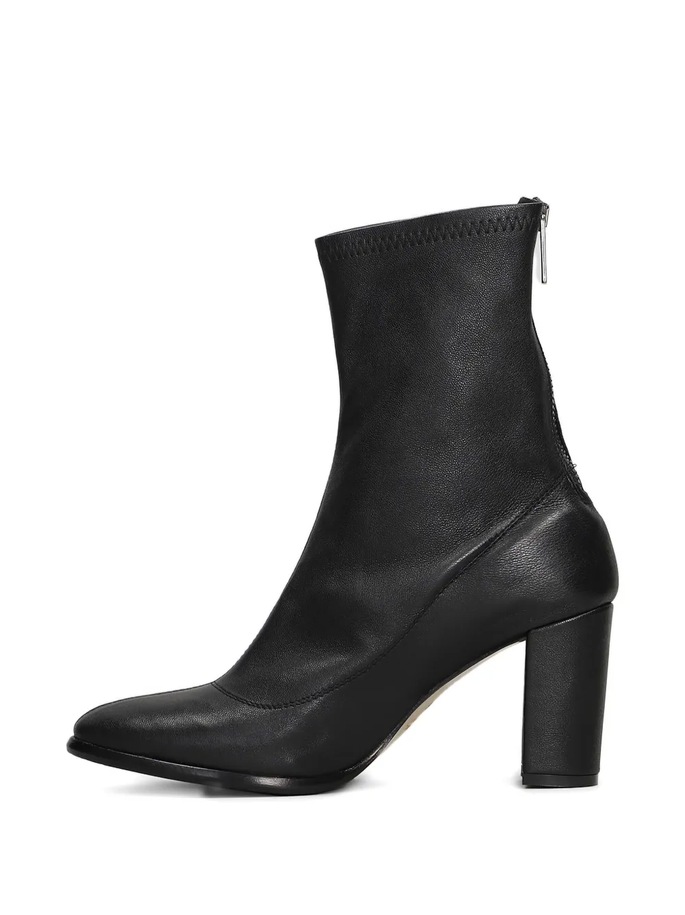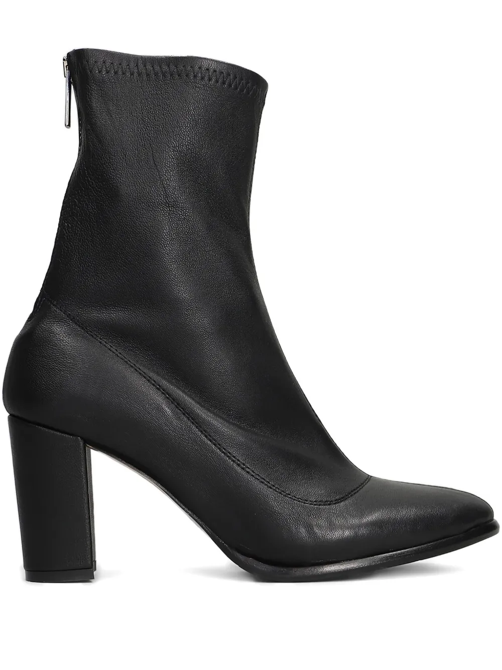 Черные туфли на блочном каблуке с заостренным носком, застежка-молния сзади, тональная строчка, длина до щиколотки