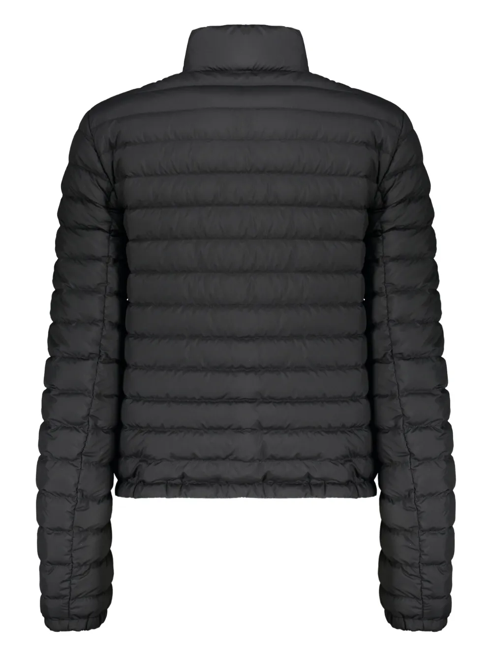 Черная стеганая куртка с высоким воротником, длинными рукавами и застежкой-молнией спереди