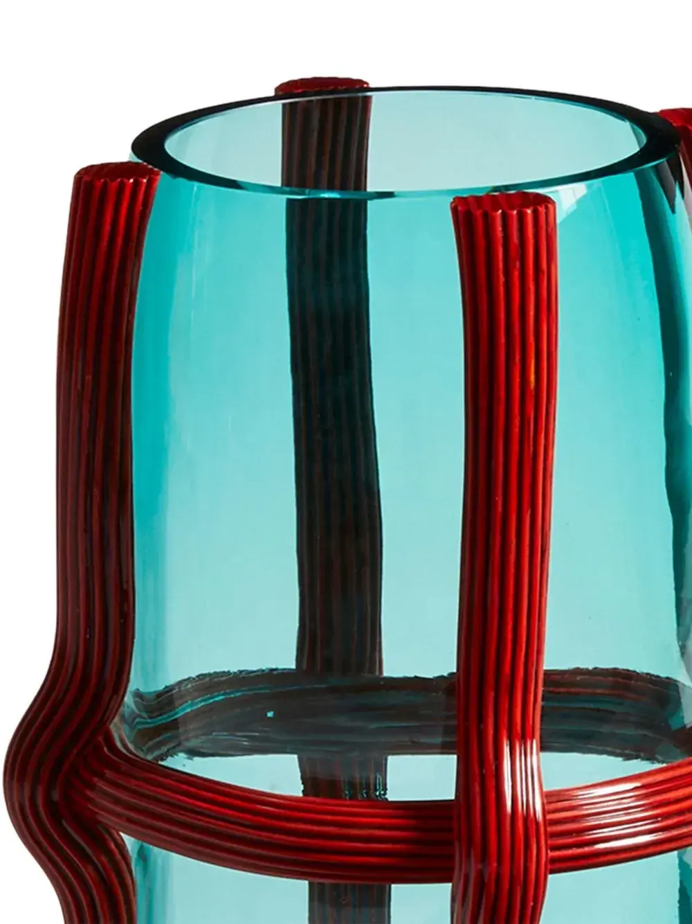 Разноцветный, муранское стекло, объемная аппликация, прозрачный материал, цилиндрический дизайн и дизайн с открытым верхом.