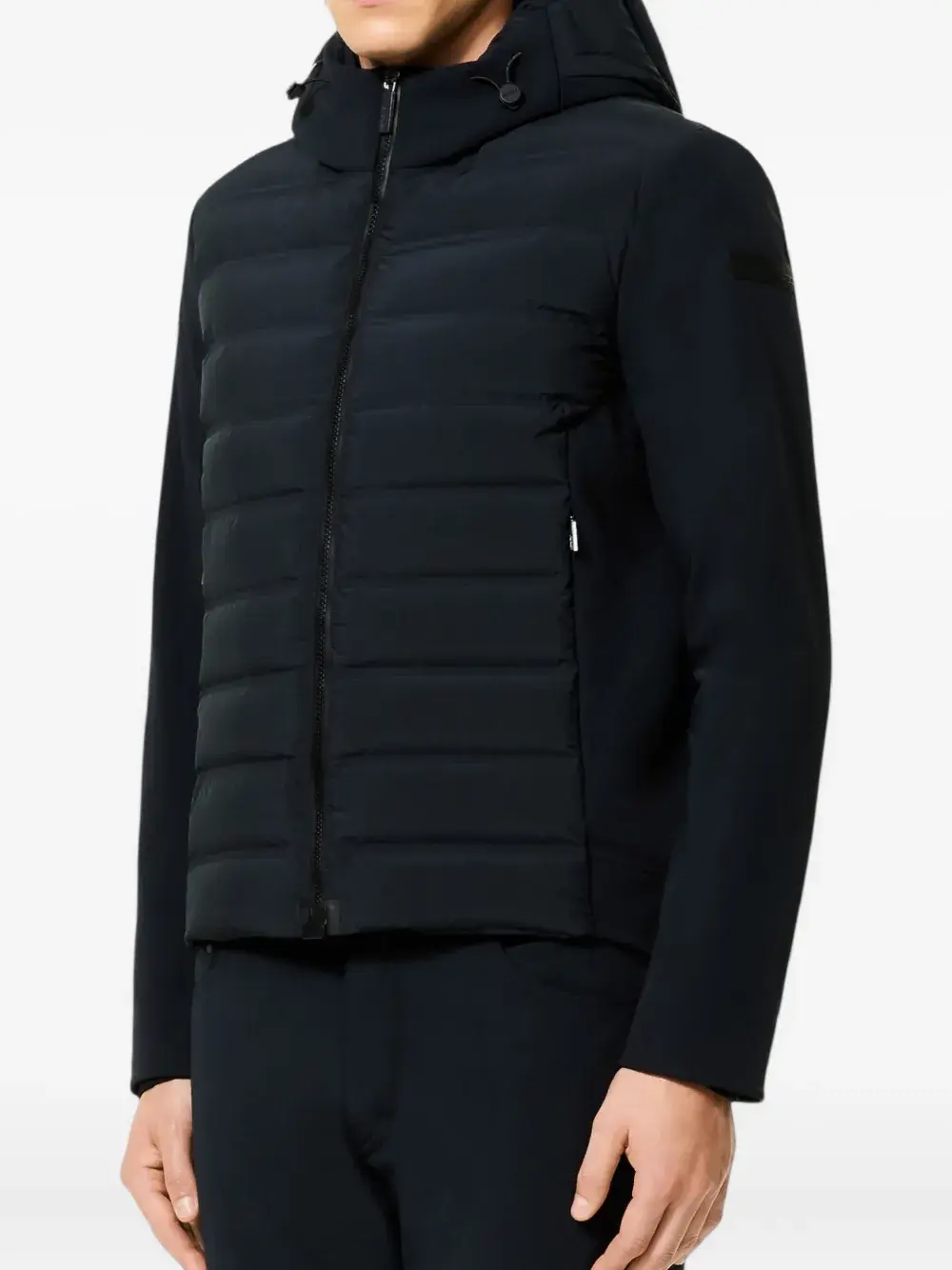 Темно-синий худи на молнии с карманами по бокам, нашивкой с логотипом и стегаными вставками
