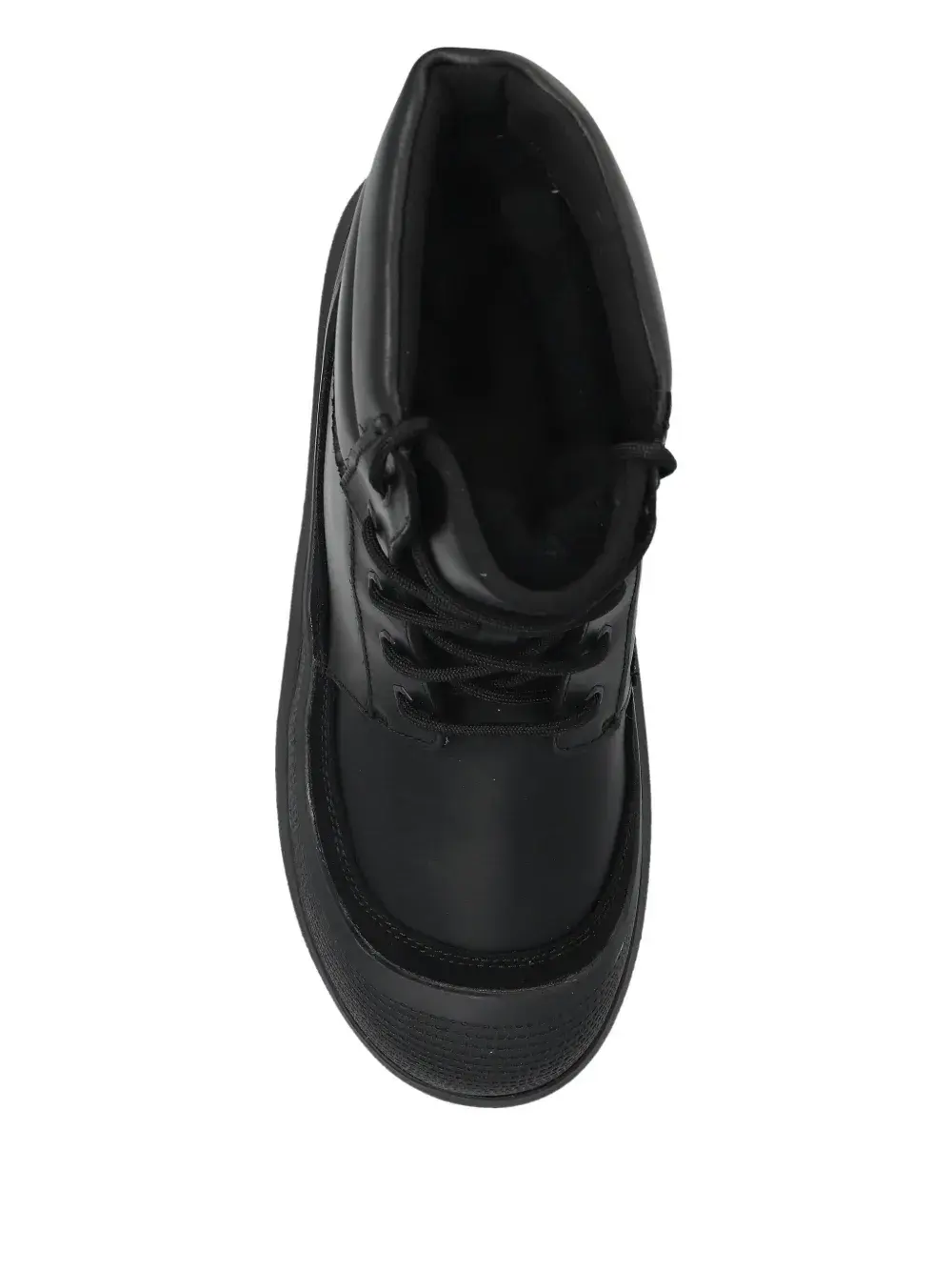Верх из черной кожи, застежка на шнуровке, мягкий задник, ребристая резиновая подошва, круглый нос