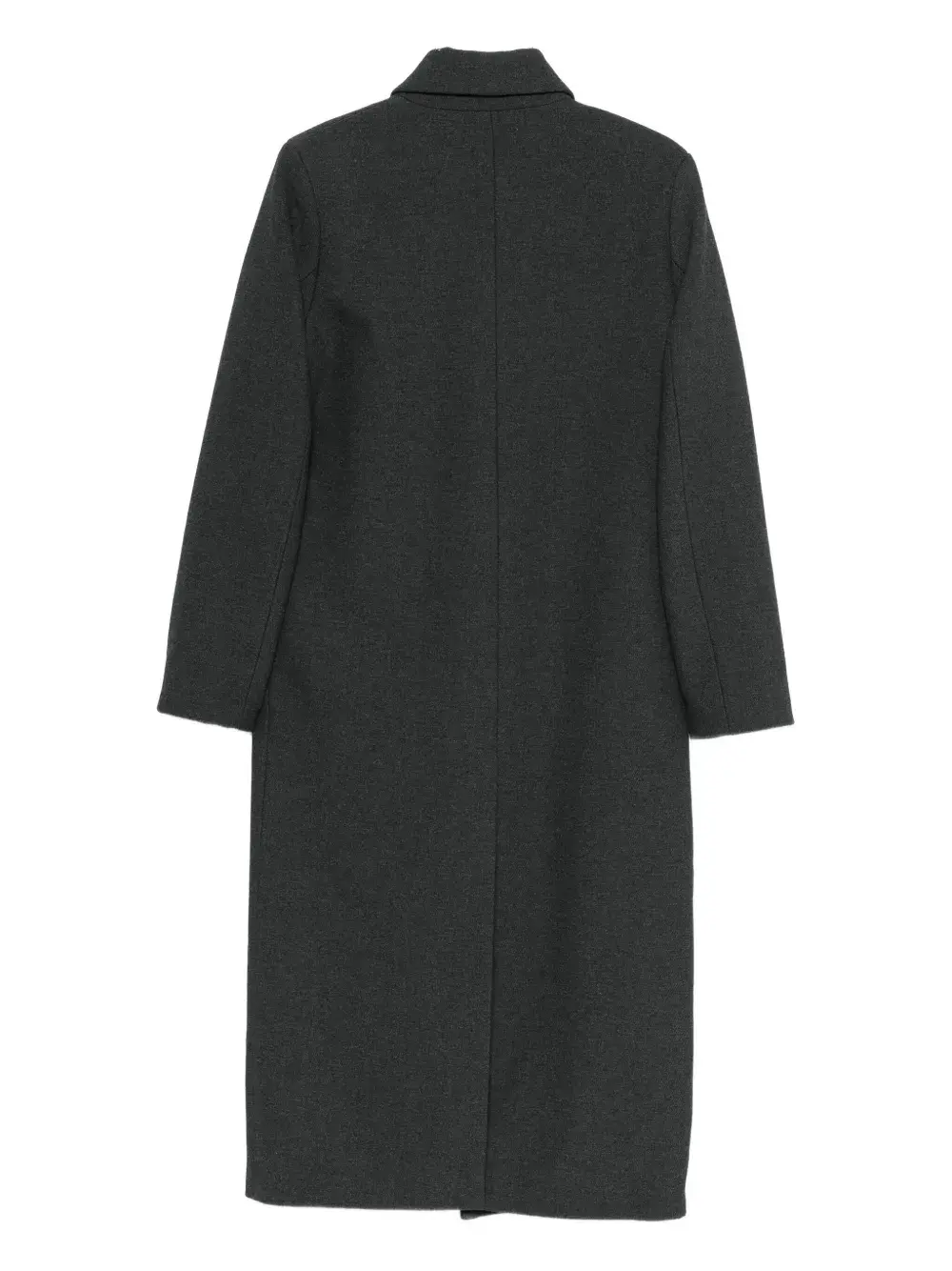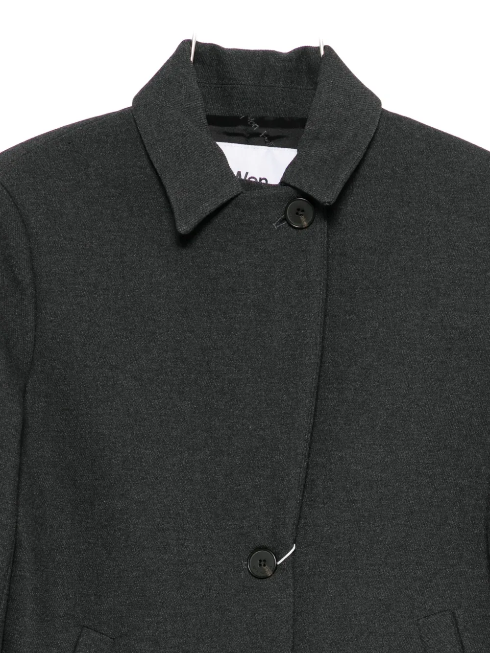 Темно-серый, застежка на пуговицы спереди, передние прорезные карманы, с воротником