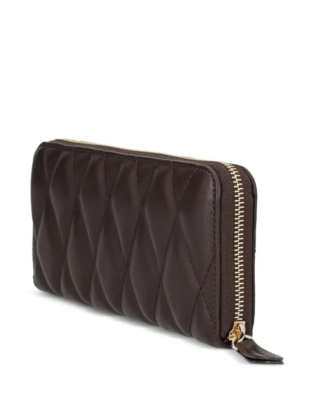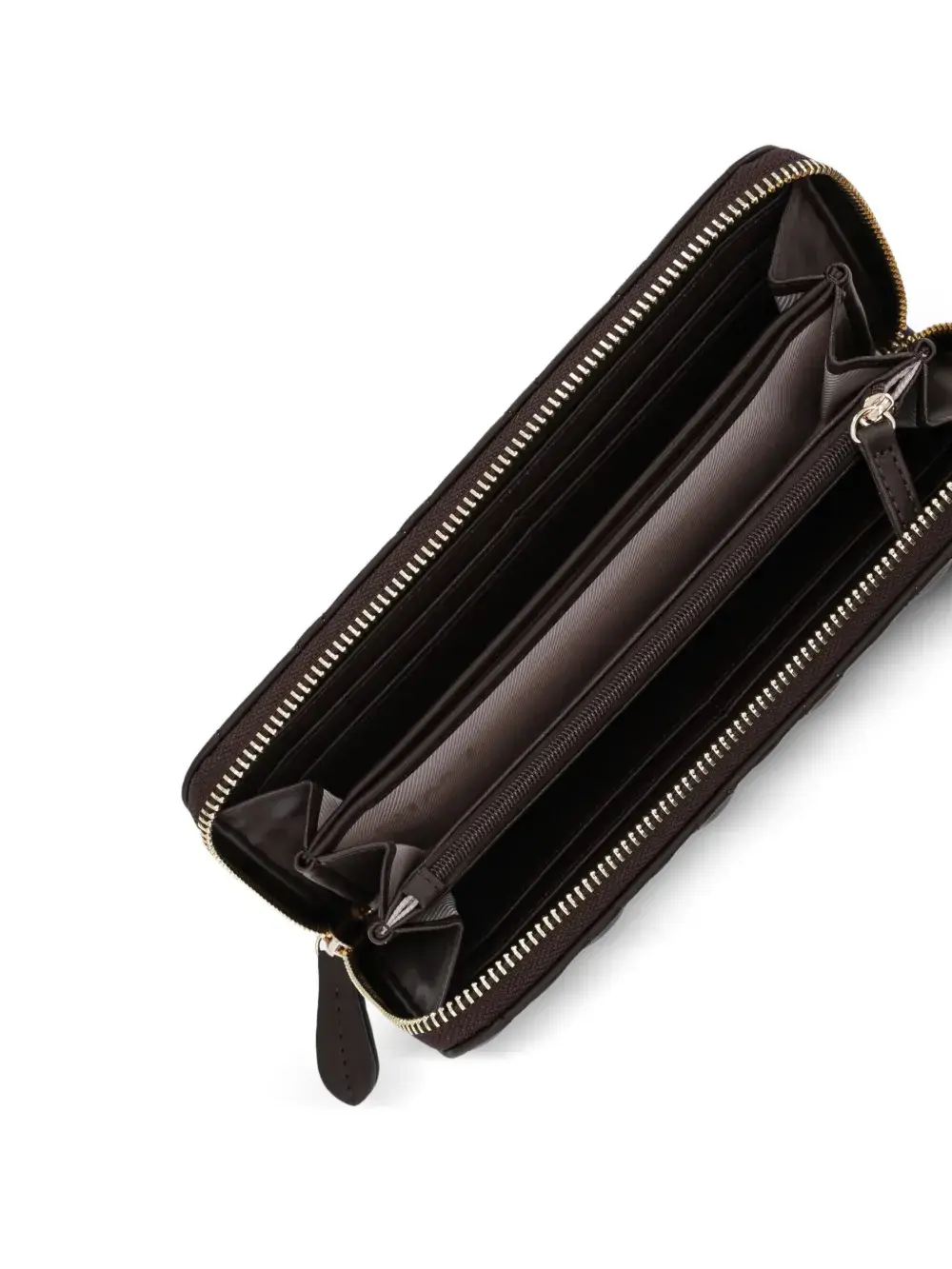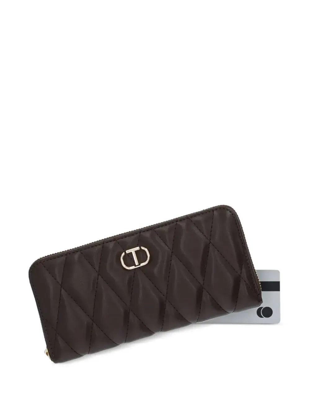 Темно-коричневый стеганый кошелек с логотипом, застежкой-молнией, внутренним карманом на молнии и несколькими внутренними слотами для карт