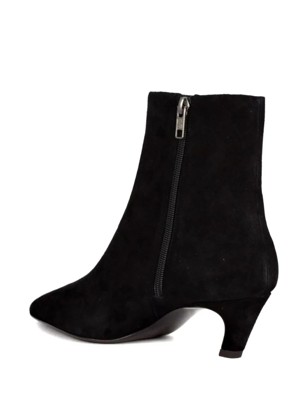 Черные туфли-лодочки с заостренным носком на низком каблуке и застежкой-молнией