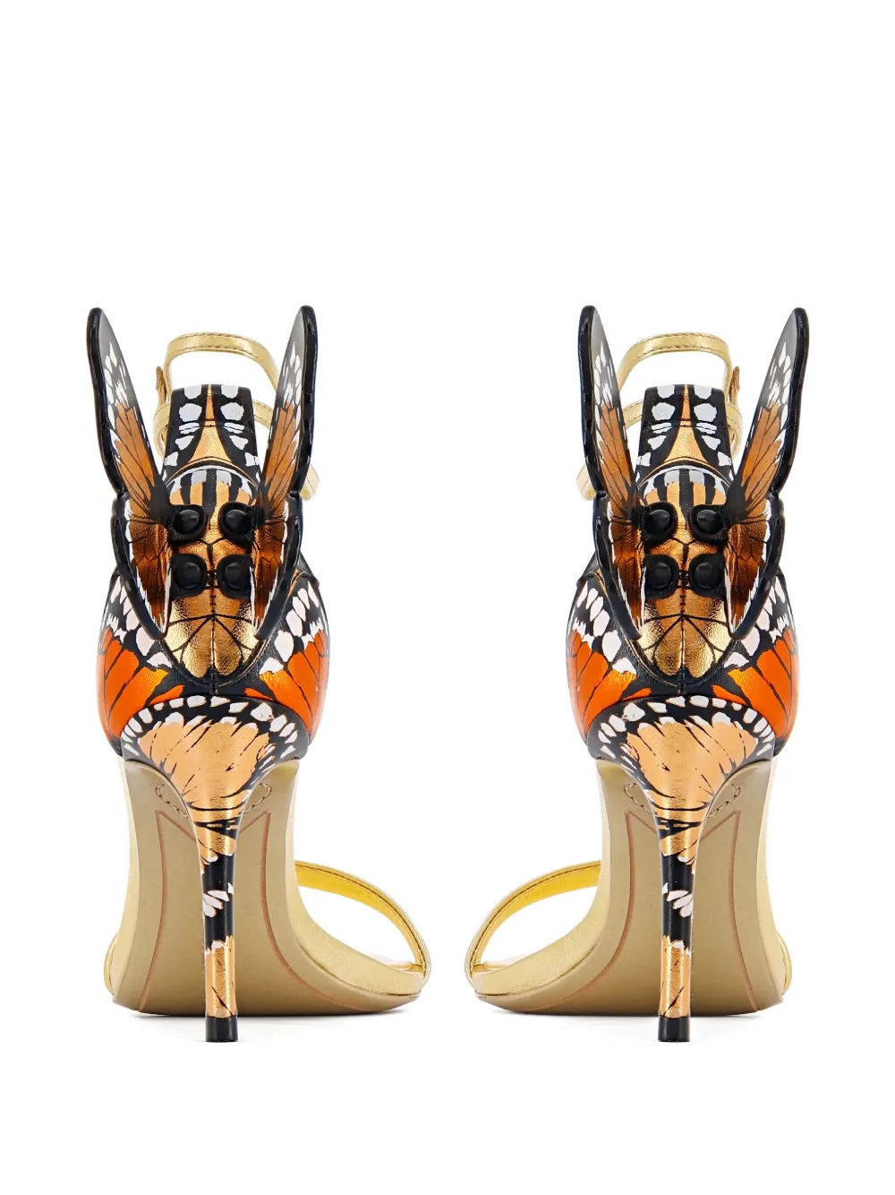 Босоножки на шпильке с анкерным ремешком и золотистой отделкой в виде мотива бабочки