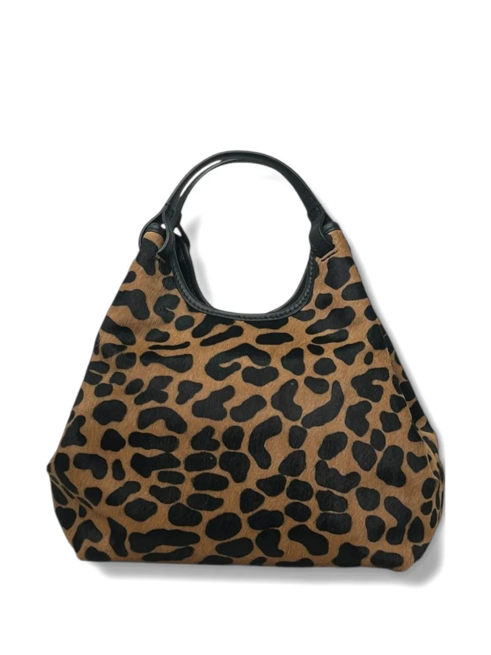 Коричневая сумка с леопардовым принтом, короткой ручкой и нашивкой с логотипом