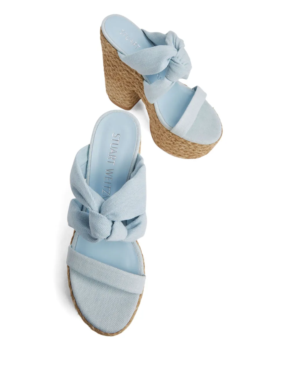 Светло-голубые с завязанным узлом, плетеные, с платформой, оплетенной джутом, и подошвой-платформой