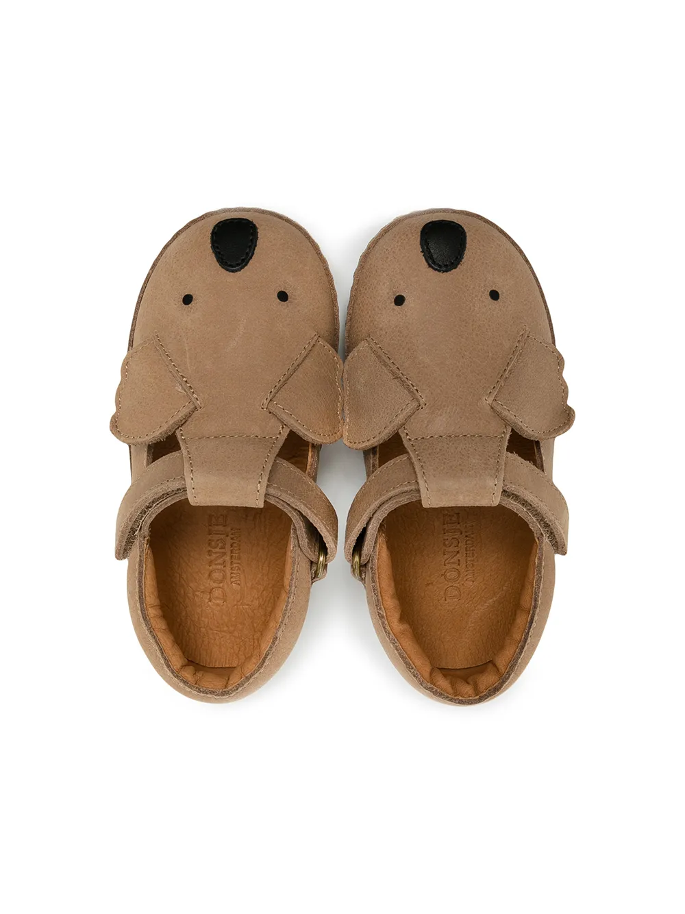 Застежка на липучке спереди, модель без застежки, закругленный носок, плоская резиновая подошва и стелька с логотипом.
