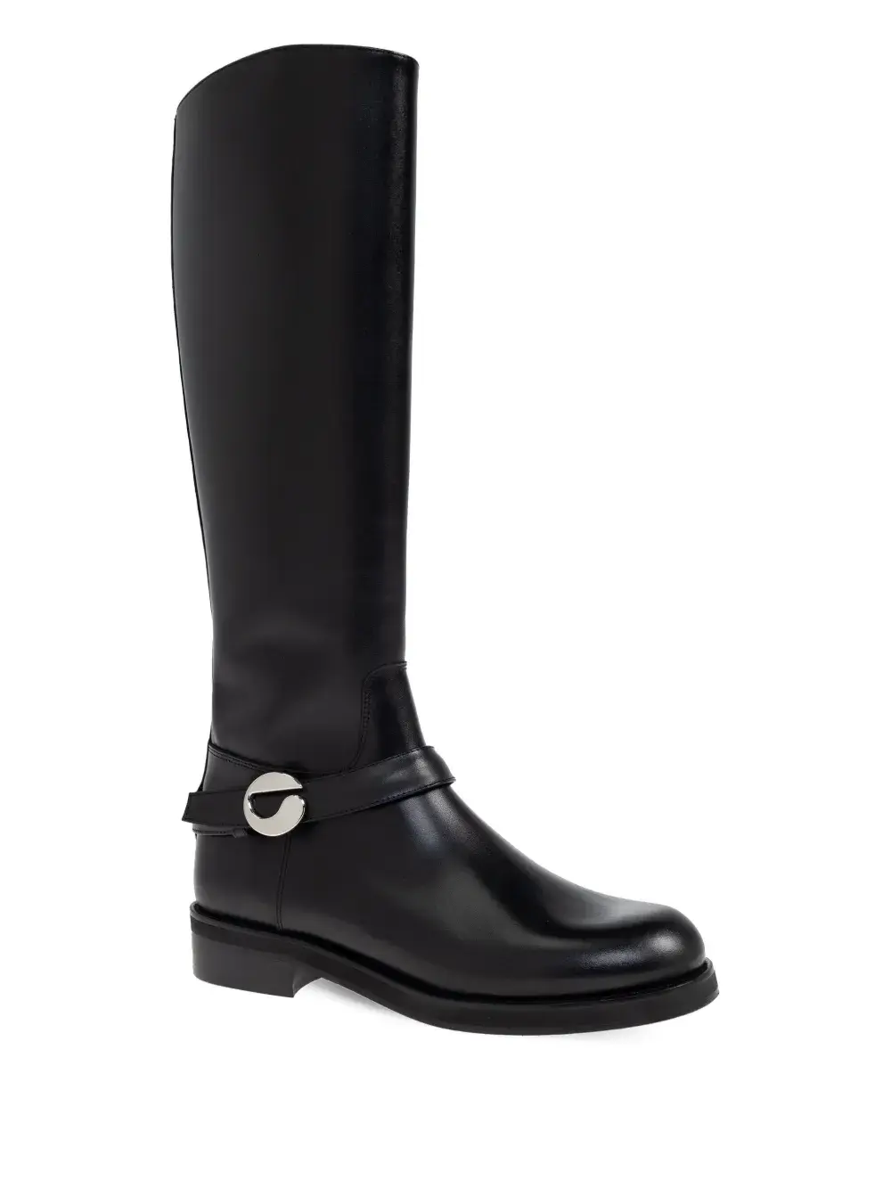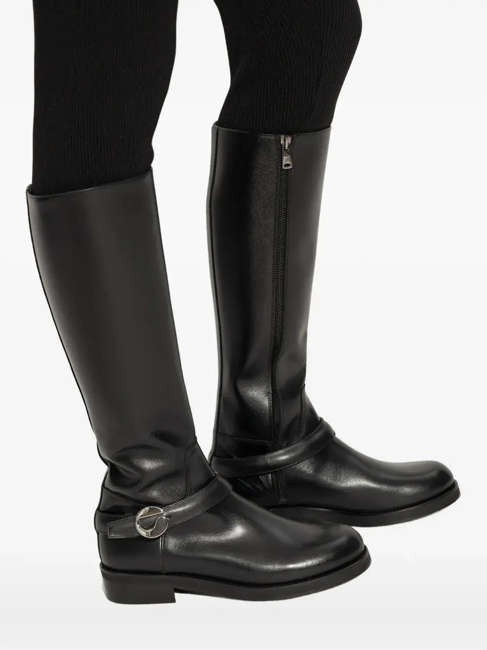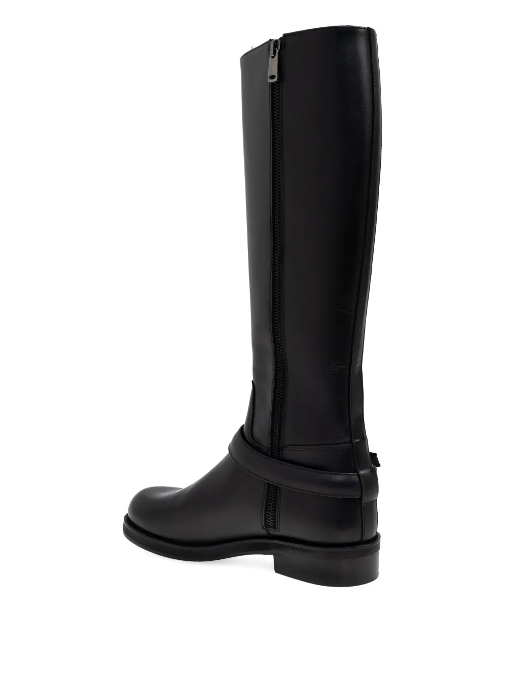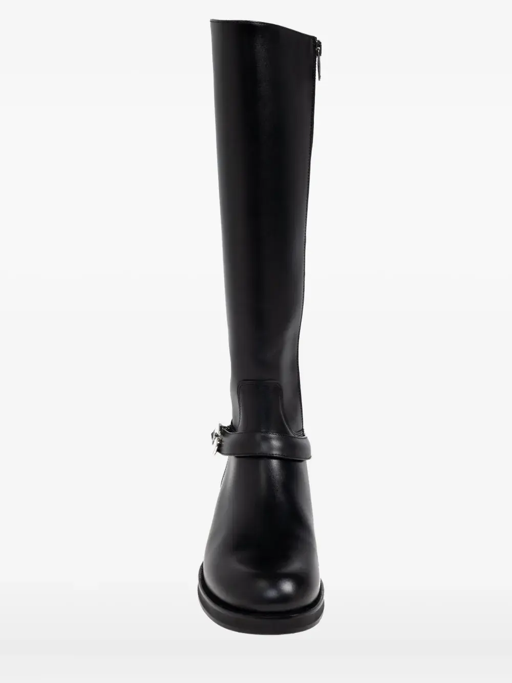 Черные полусапоги из телячьей кожи с боковой молнией, ремешком и пряжкой на каблуке