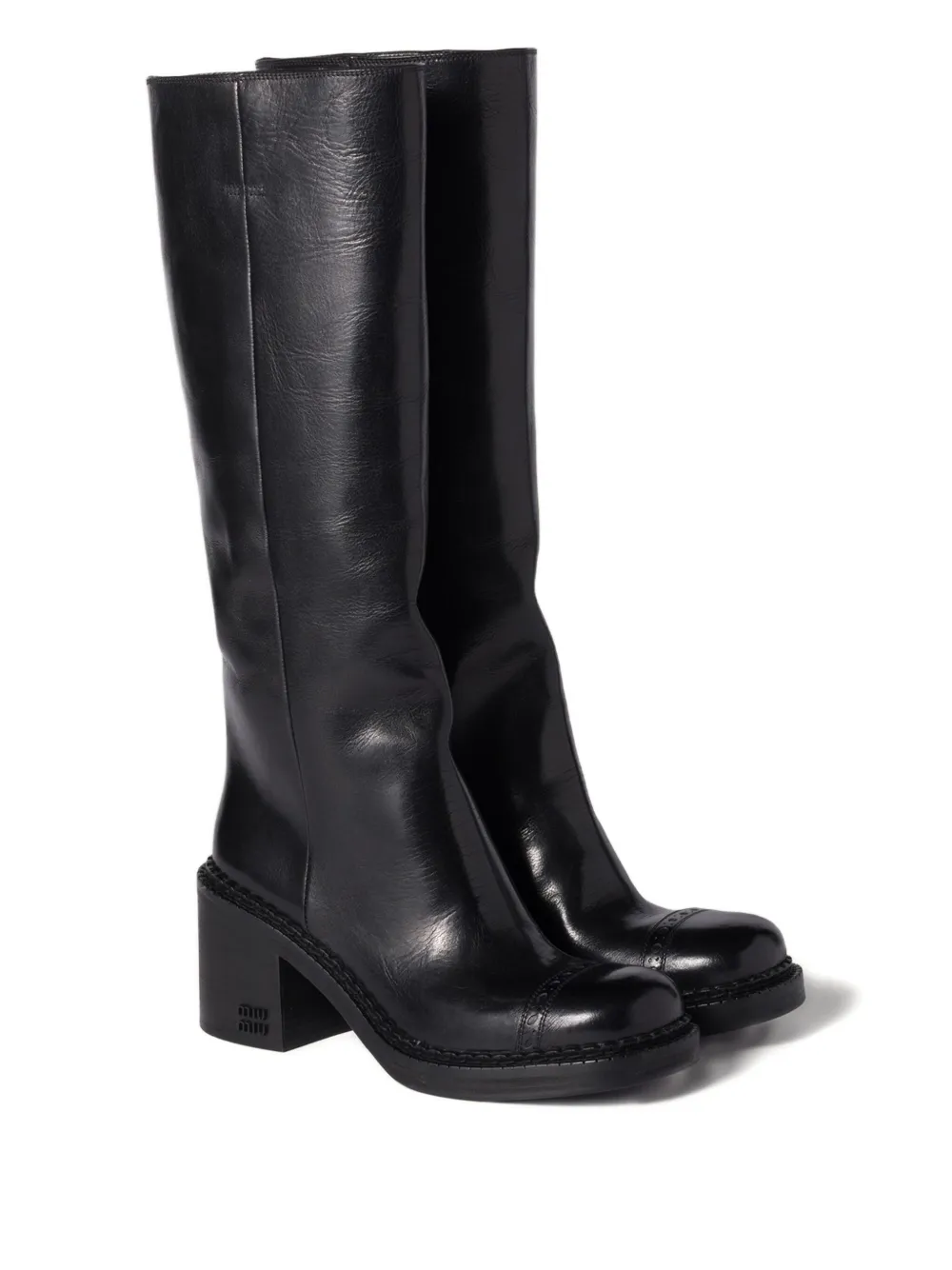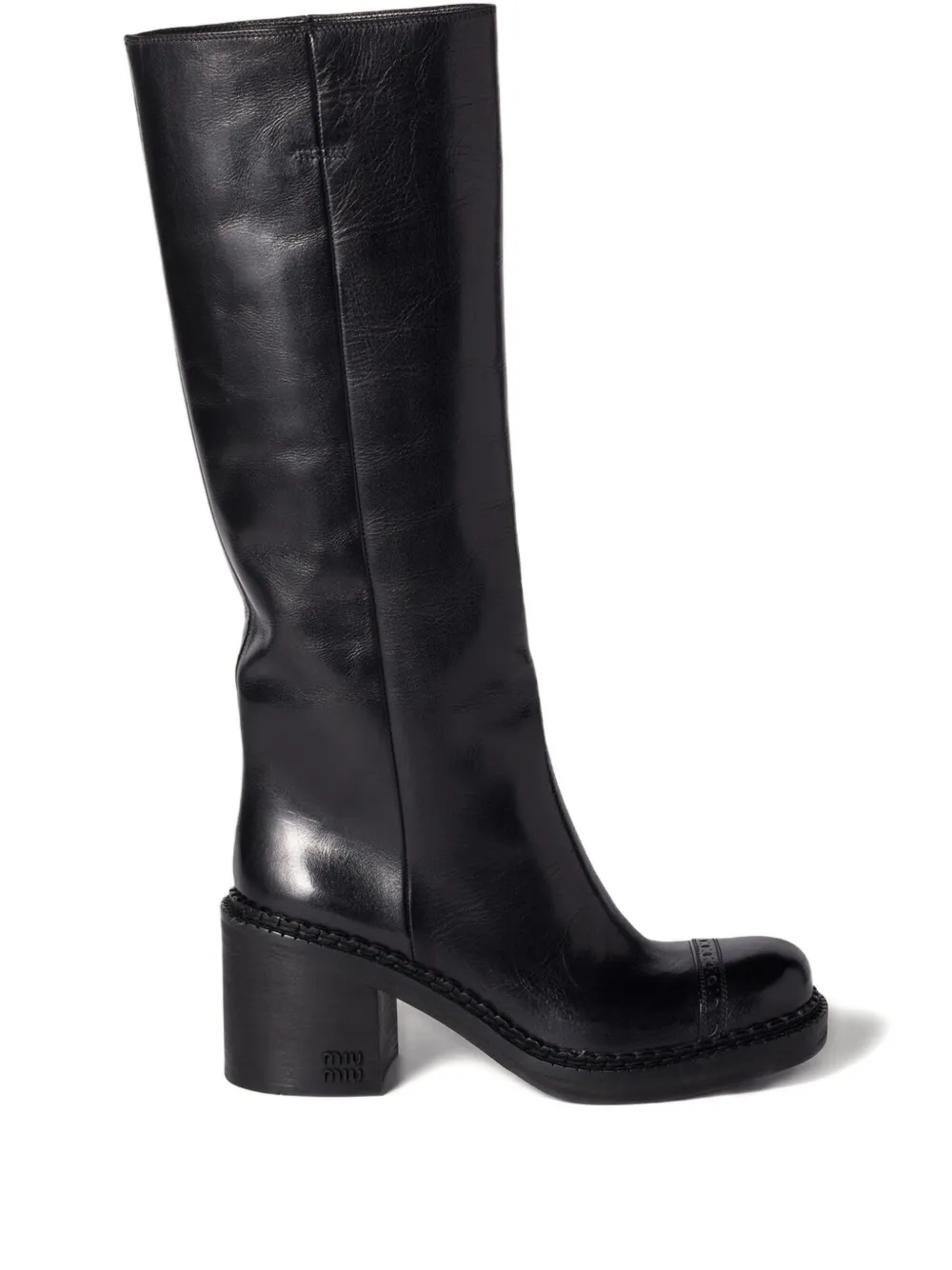 Кожаные сапоги на каблуке 75 мм Miu Miu, черный