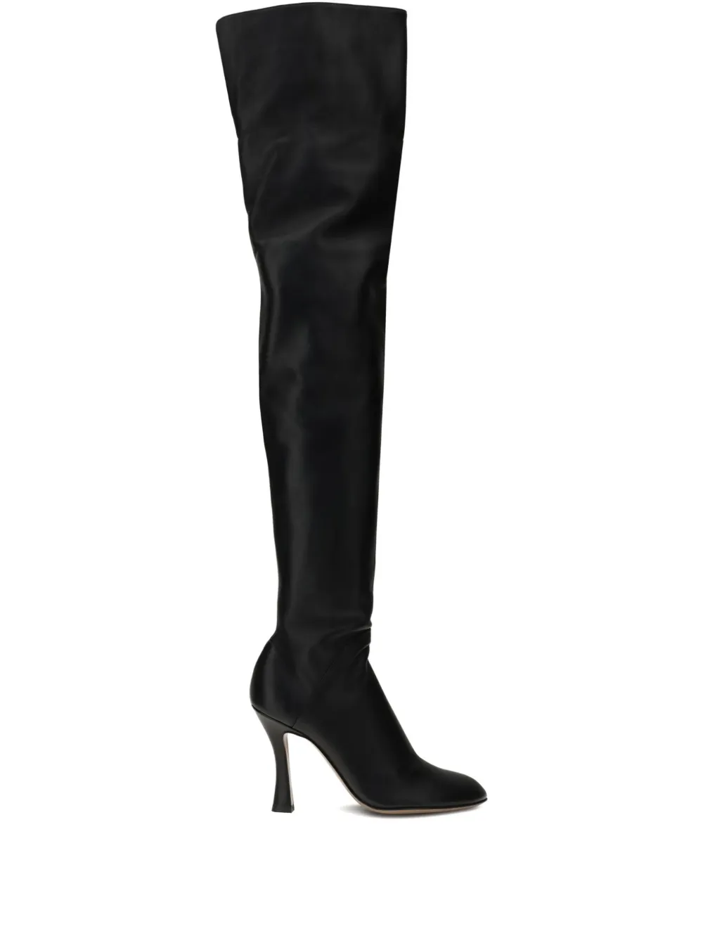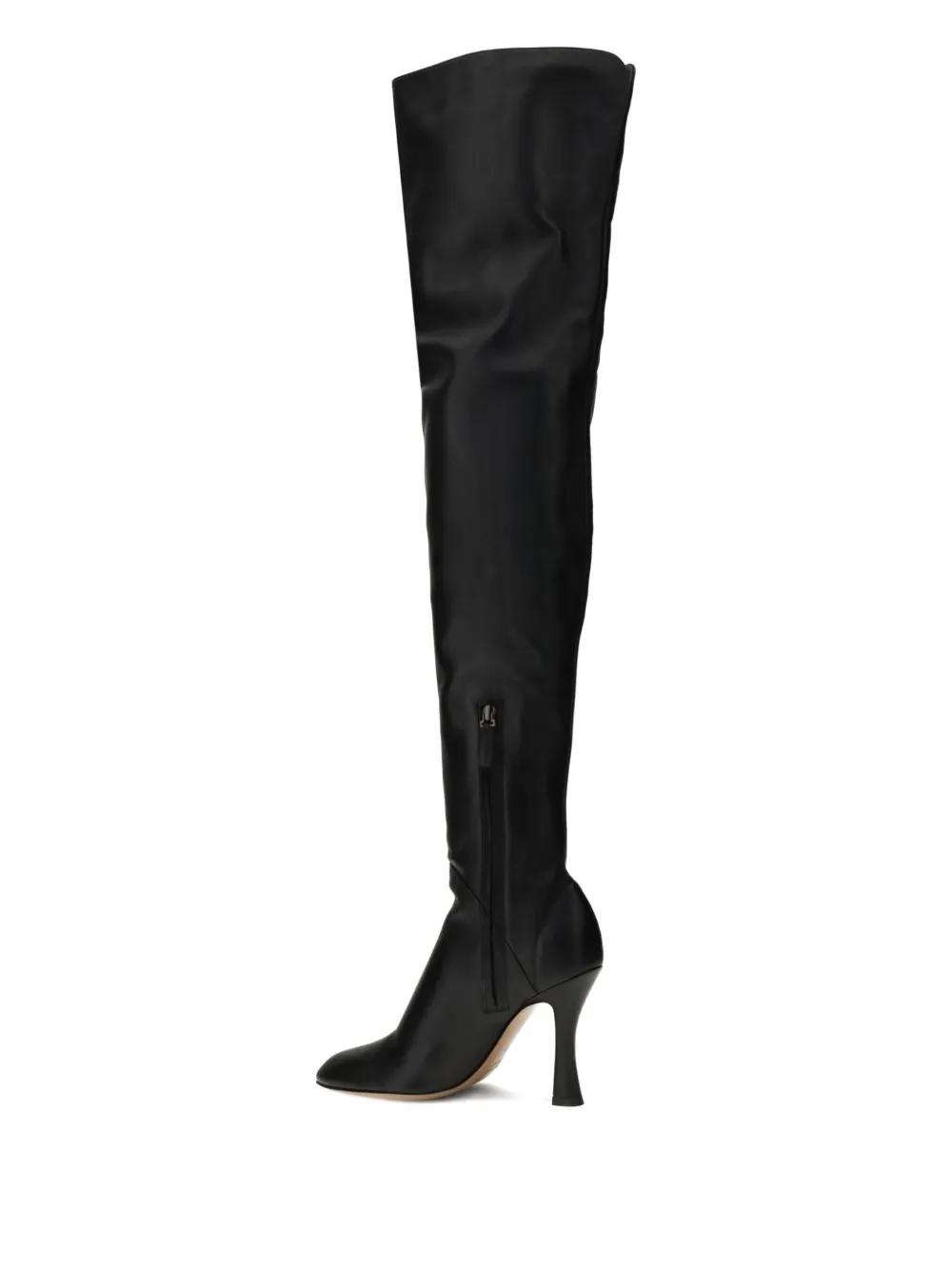 Черные ботфорты с круглым носком, шпилькой и боковой застежкой-молнией