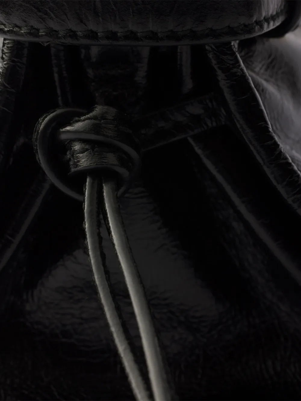 Черные кожаные ручки, фурнитура с золотистым покрытием, боковая застежка на шнурке, верхняя застежка на молнии, пряжка