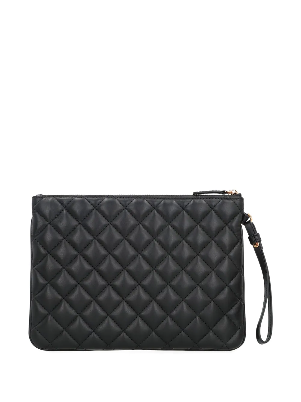 Стеганый кожаный клатч с логотипом Versace, черный