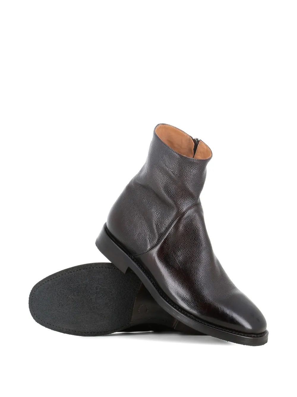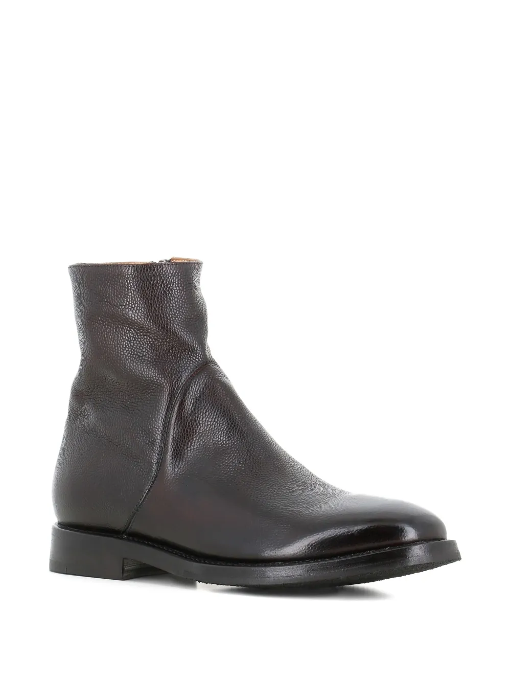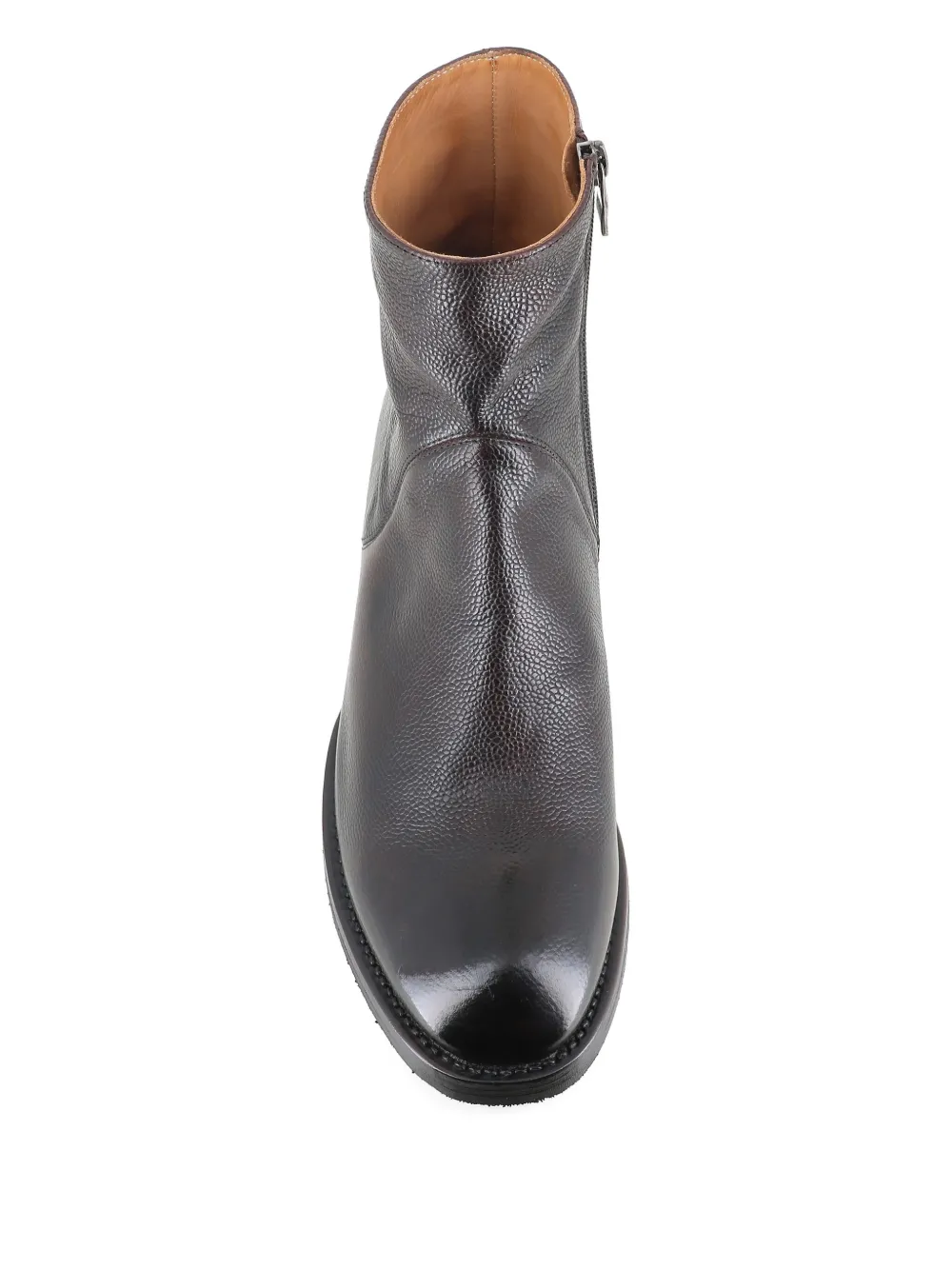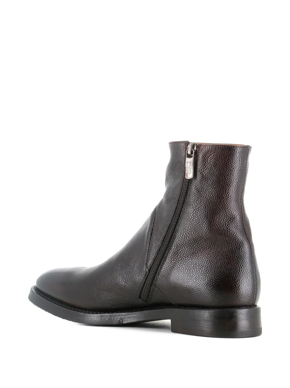 Темно-коричневая кожа с текстурой, застежка-молния, высота до щиколотки, плоская подошва, широкий каблук