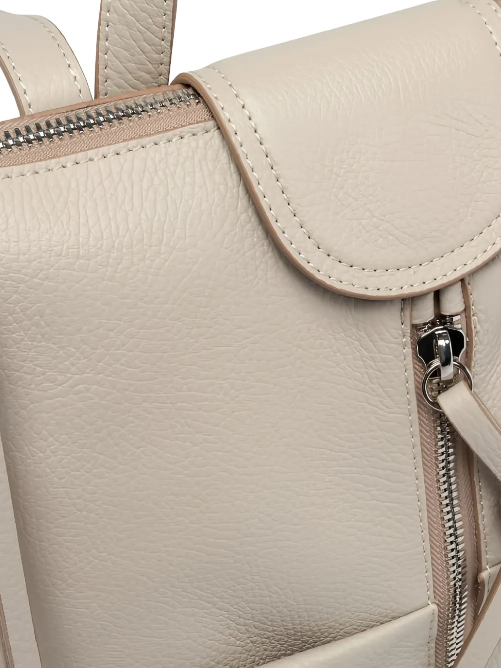Бежевый кожаный верх с ручкой, застежка-молния, регулируемые ремни, фронтальная молния