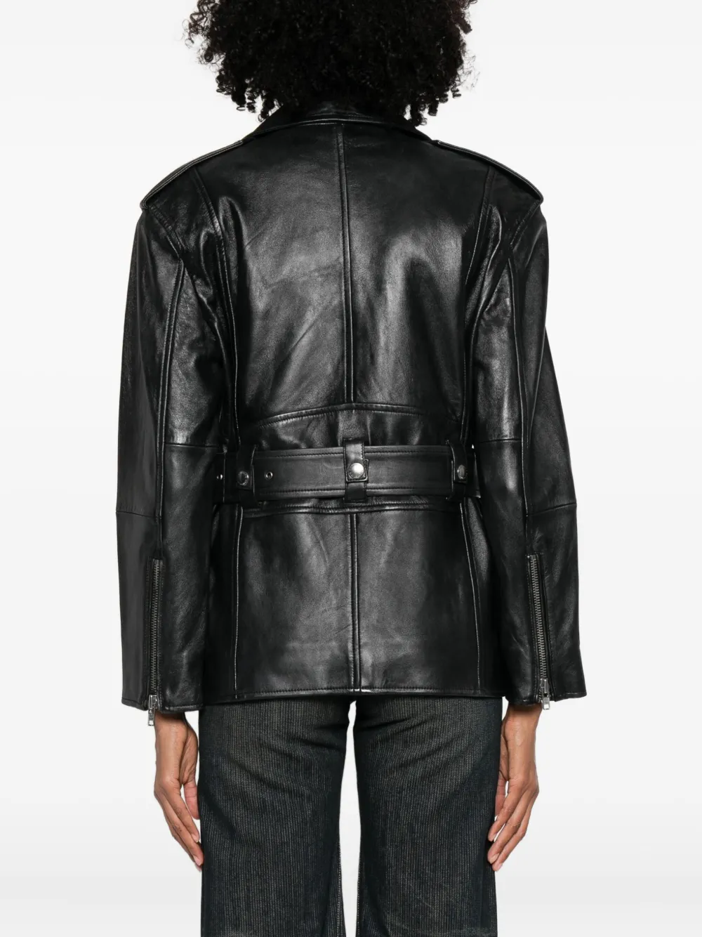 Кожаная куртка с поясом Stand Studio, черный