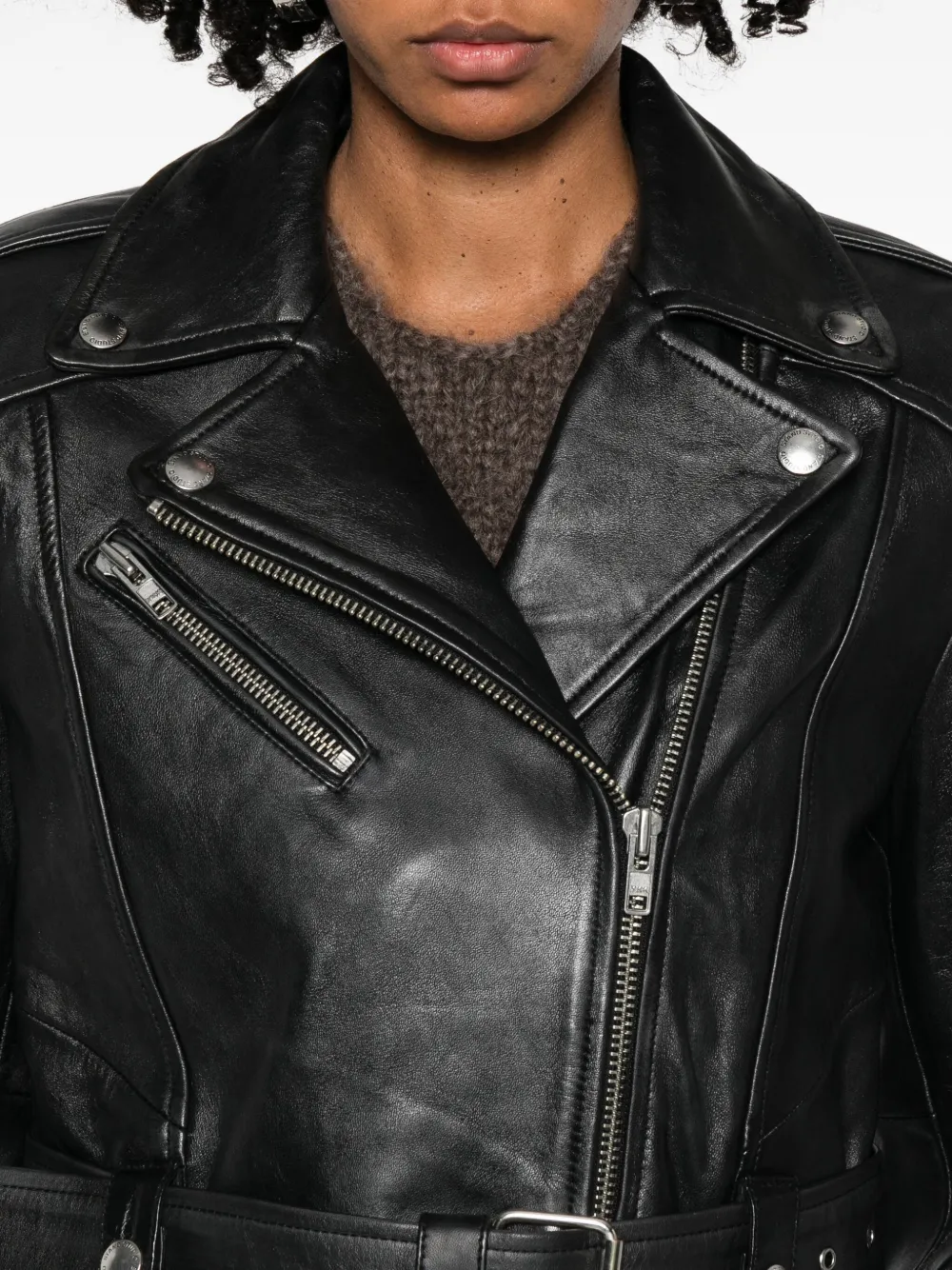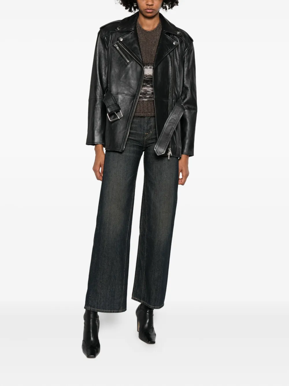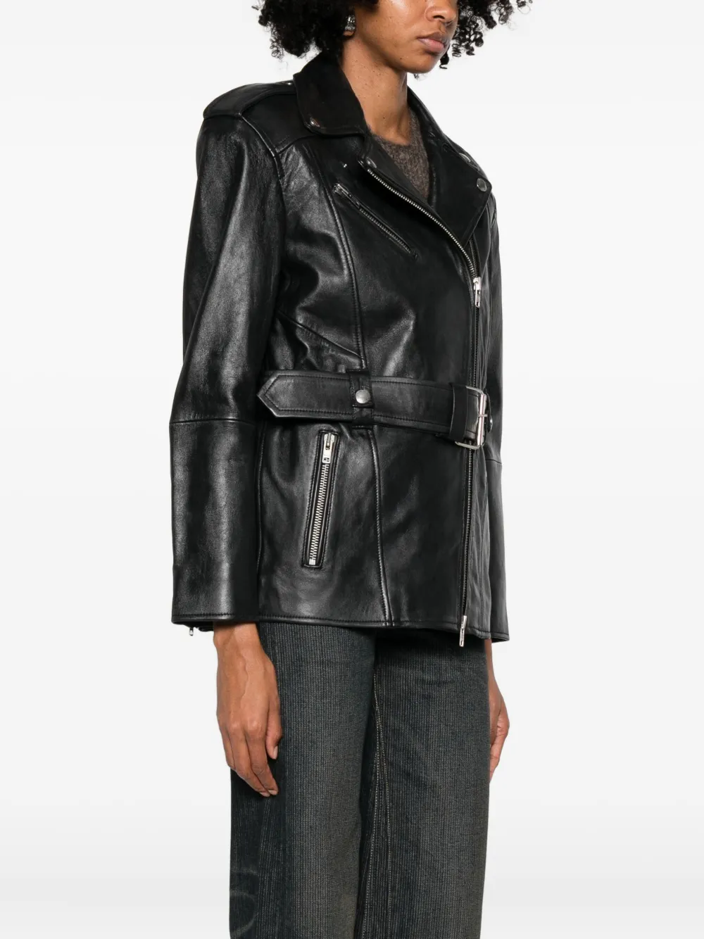 Кожаная куртка с поясом Stand Studio, черный 71 014₽