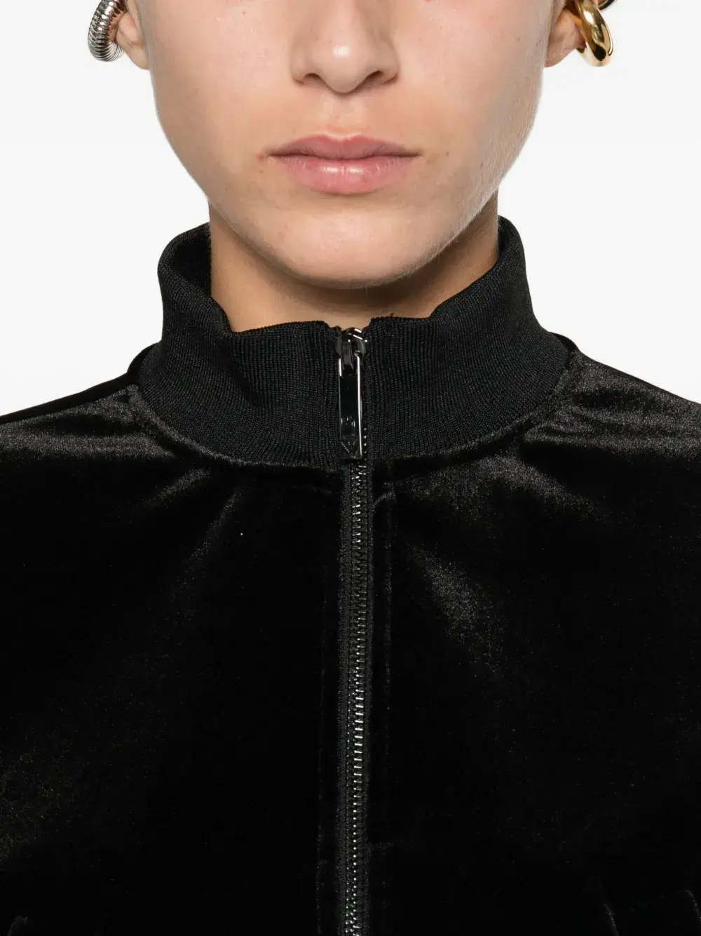 Черная куртка на молнии с высоким воротом, длинные рукава, ребристый край, боковые карманы