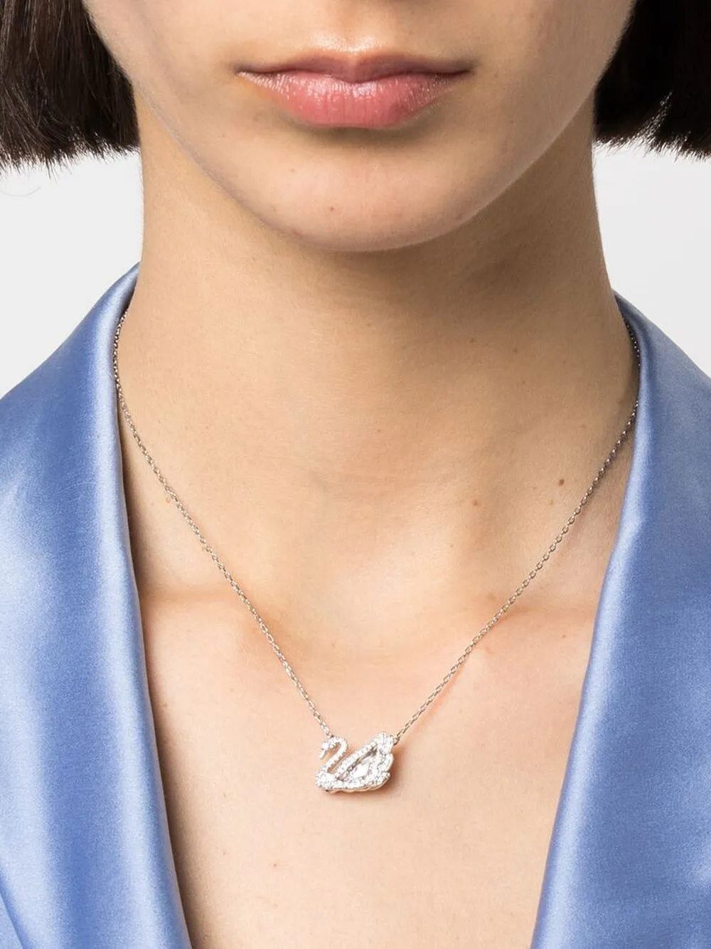 Серебристый, отделка кристаллами Swarovski, цепочка с кулоном, отделка кристаллами Swarovski, застежка-карабин, тонкая цепочка, регулируемый дизайн и подвеска с логотипом.