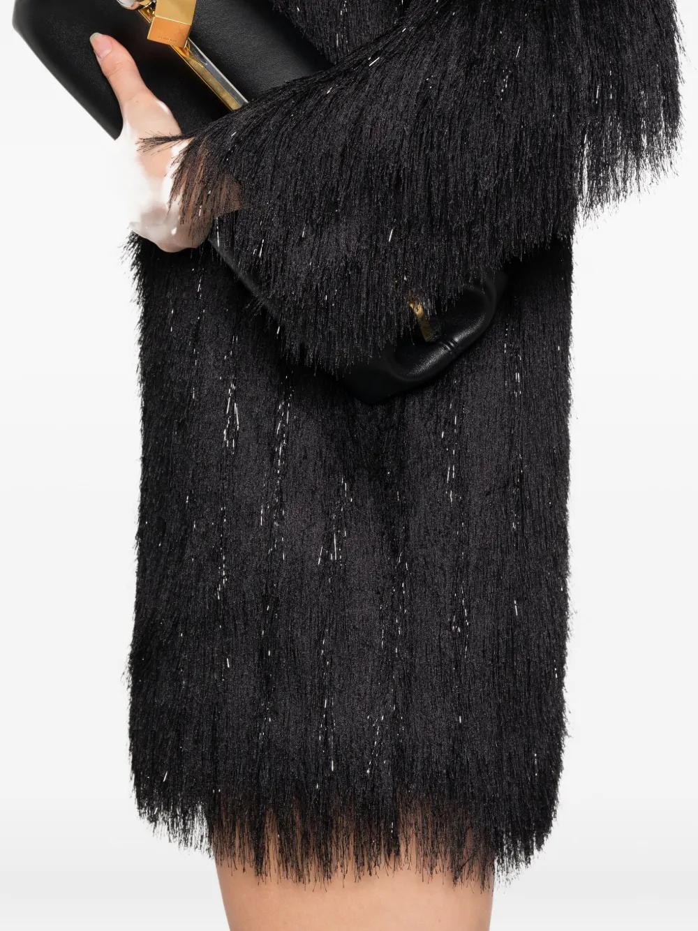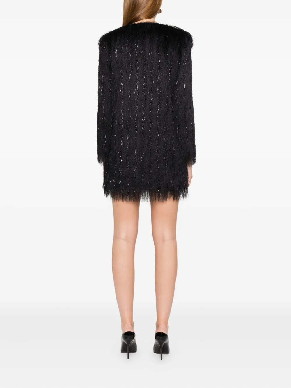 Черные вертикальные полосы, V-образный вырез, длинные рукава