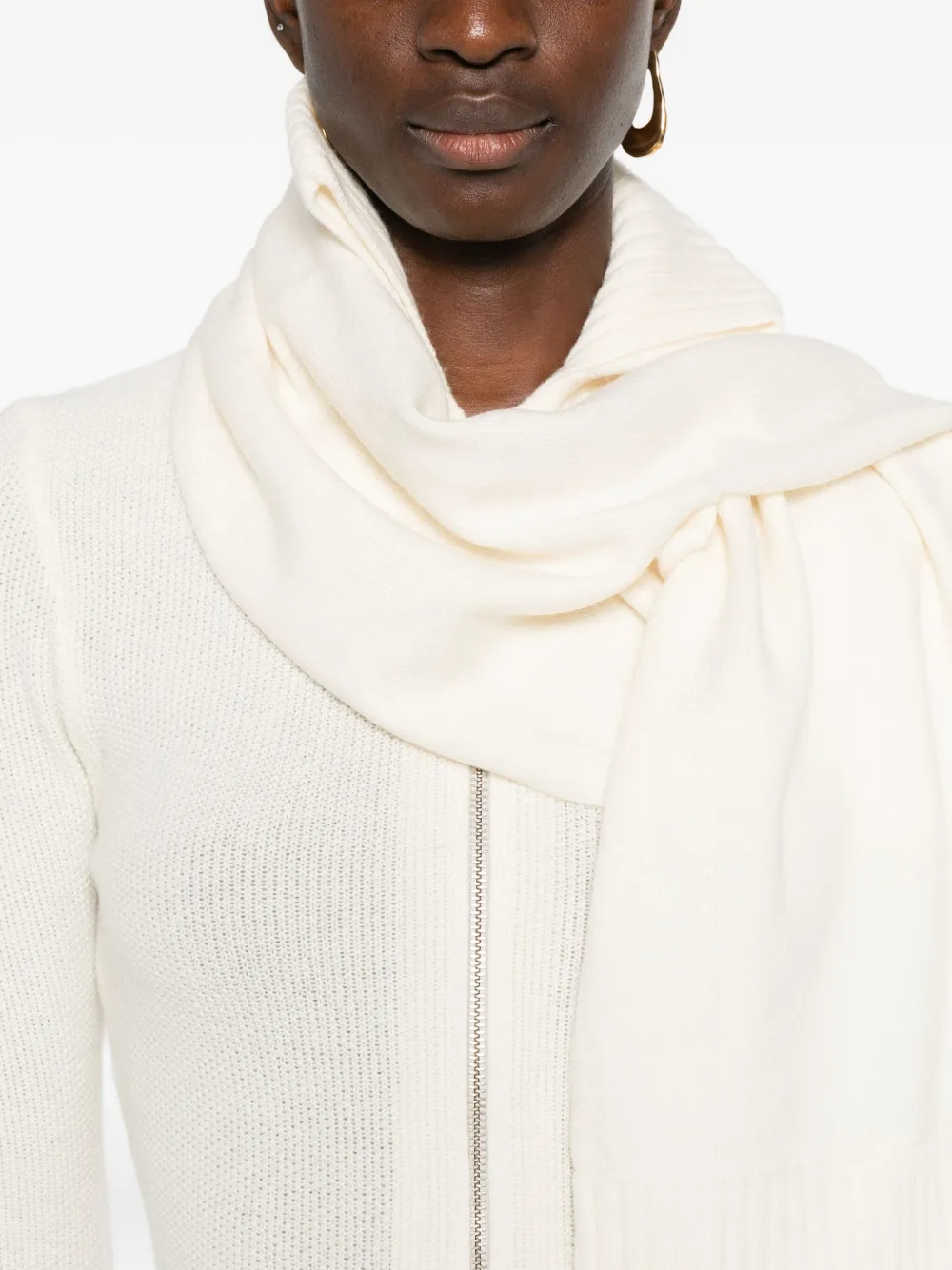 Шарф с ребристой вязкой цвета сливочного крема, длинные рукава, круглый вырез