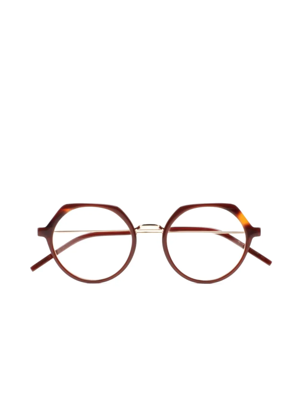 Коричневая геометрическая оправа, тонкие дужки, круглые линзы, комбинированная оправа. Эти очки поставляются с защитным футляром. Все очки на FARFETCH продаются как оправа без рецепта.