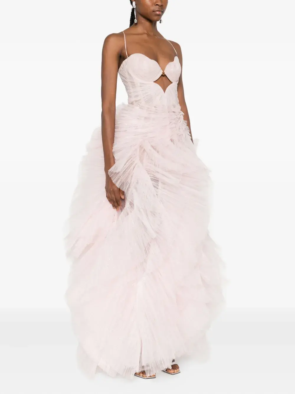 Светло-розовый многослойный дизайн с оборками, бретели-спагетти, вырез сердечком, присборенная отделка
