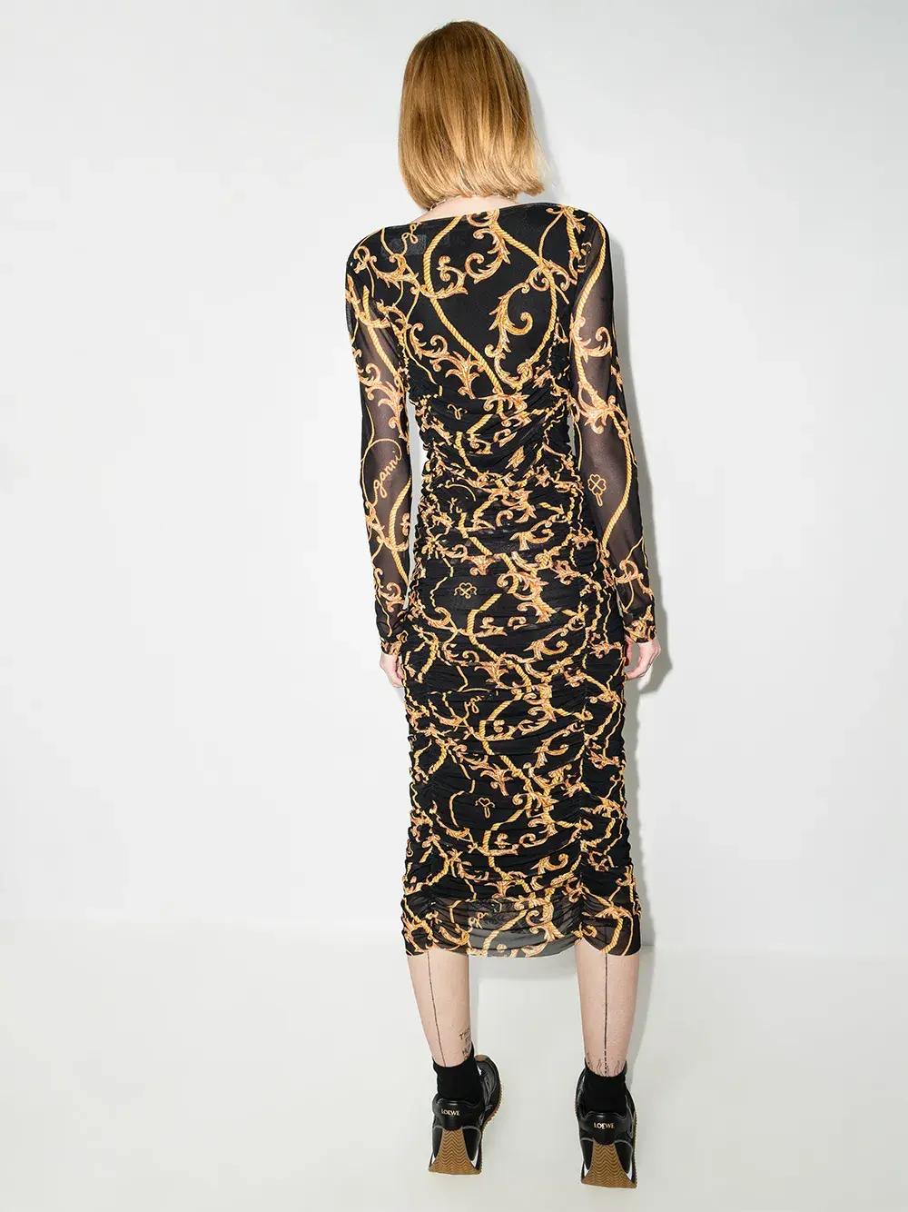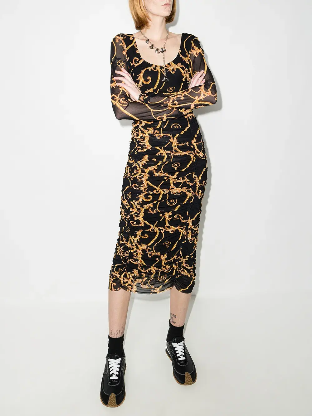 Детали с оборками, принт с изображением смайла, U-образный вырез, длинные рукава, полупрозрачные рукава и длина ниже колена. POSITIVELY CONSCIOUS: У каждого товара из коллекции этого бренда есть сертификат Carbon Neutral. Он подтверждает, что производитель контролирует выбросы парниковых газов и компенсирует углеродный след..