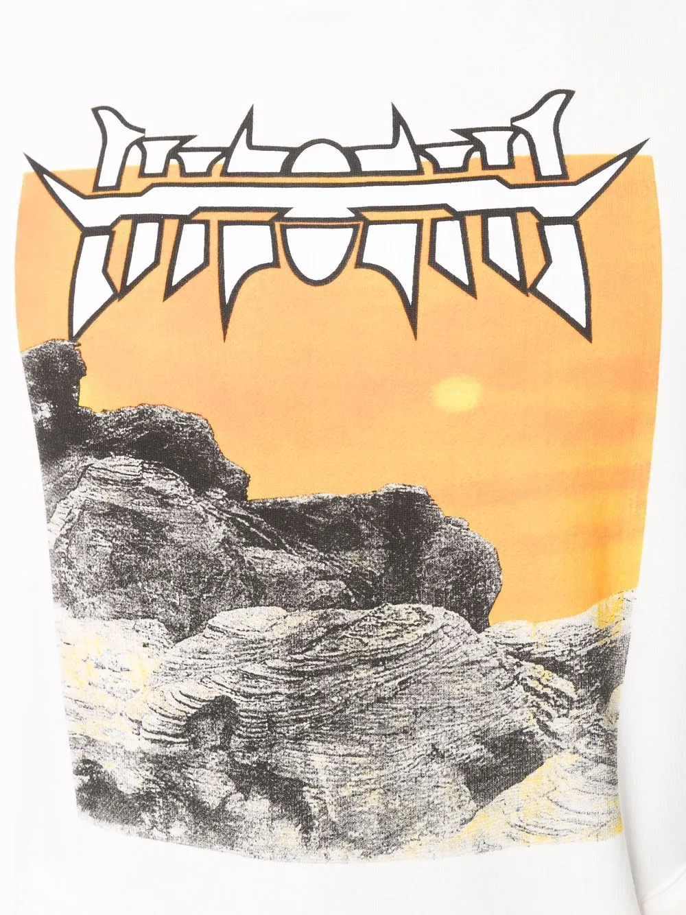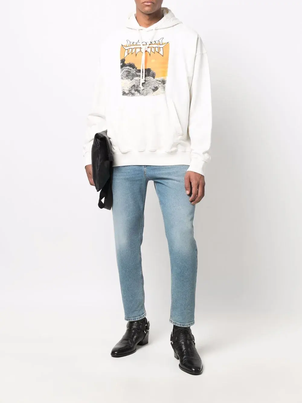 Графичный принт спереди, классический капюшон, длинные рукава, затягивающийся на шнурок капюшон и накладной карман спереди. Цвет: белый.
