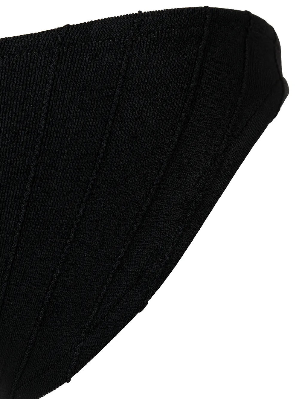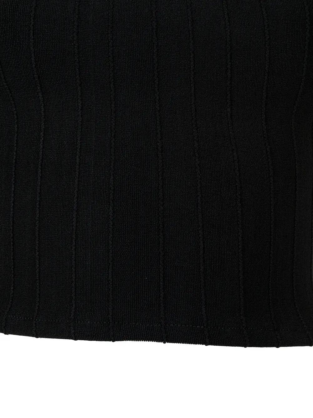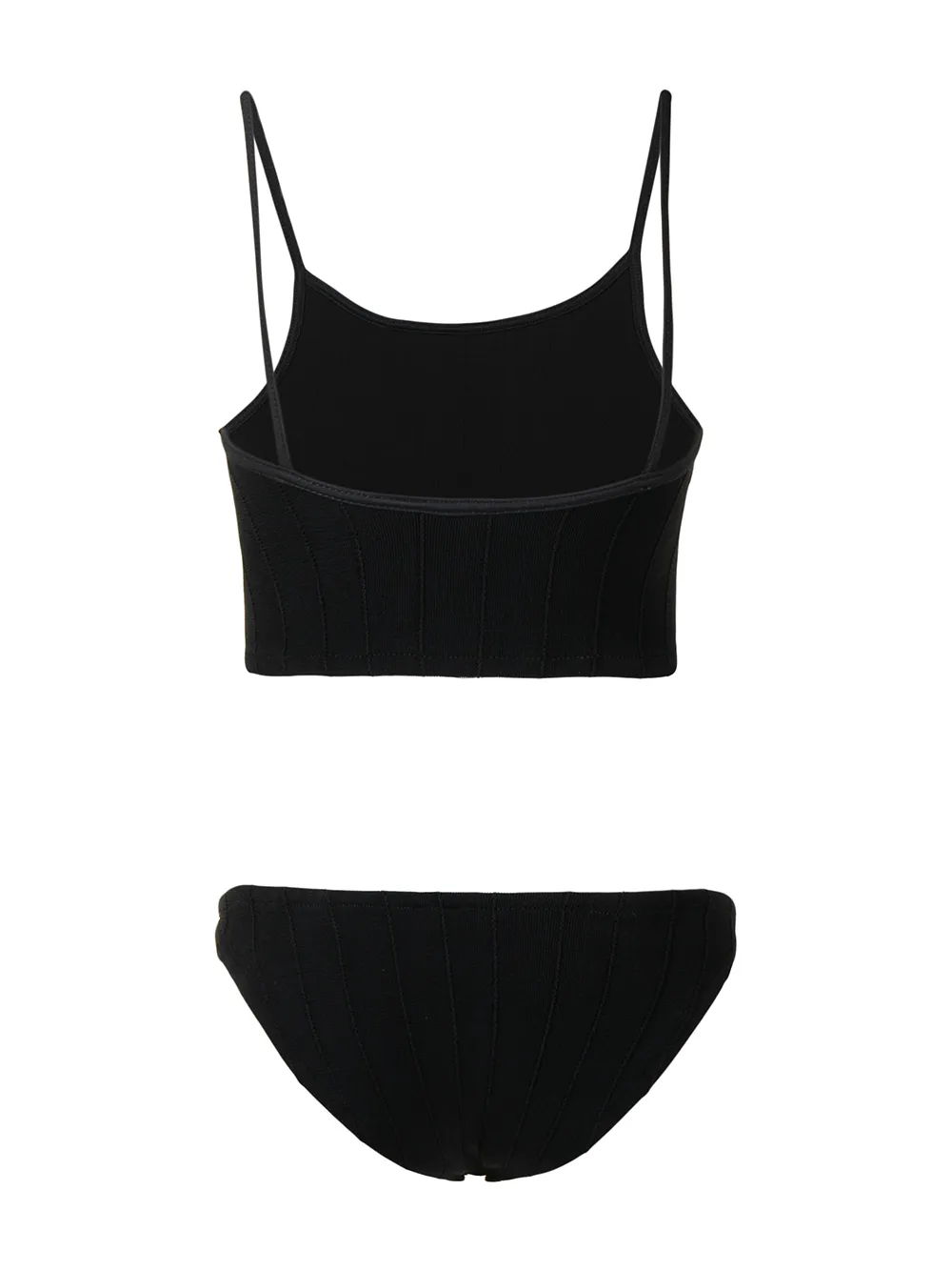 Вязаный дизайн, детали в рубчик, эластичная модель, тонкие бретели, U-образный вырез на спине, укороченная длина и низкая посадка. Цвет: черный. Пожалуйста, примеряйте купальники и пляжные шорты только поверх собственного белья.