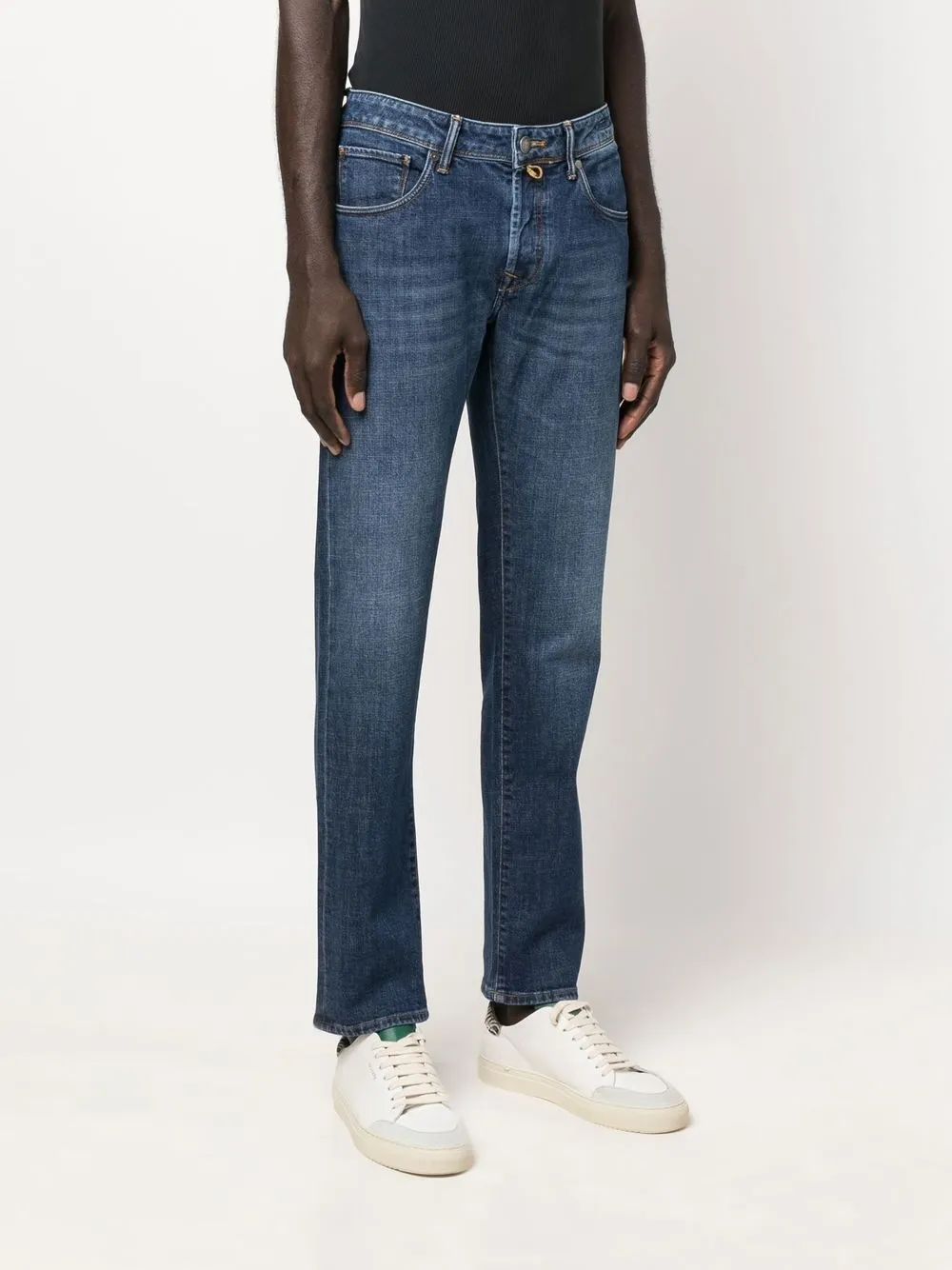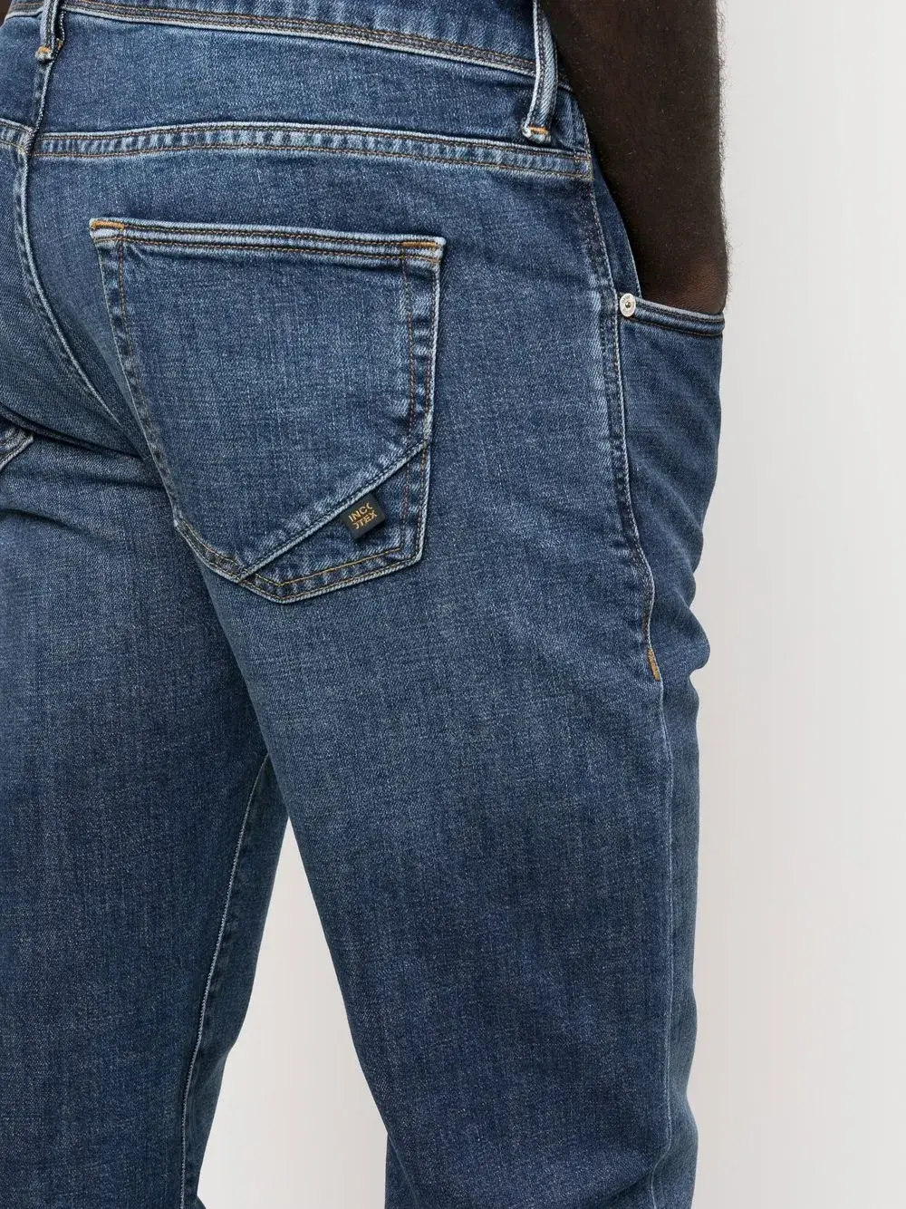 Нашивка с логотипом сзади, пять карманов, петли для ремня и прямой крой.