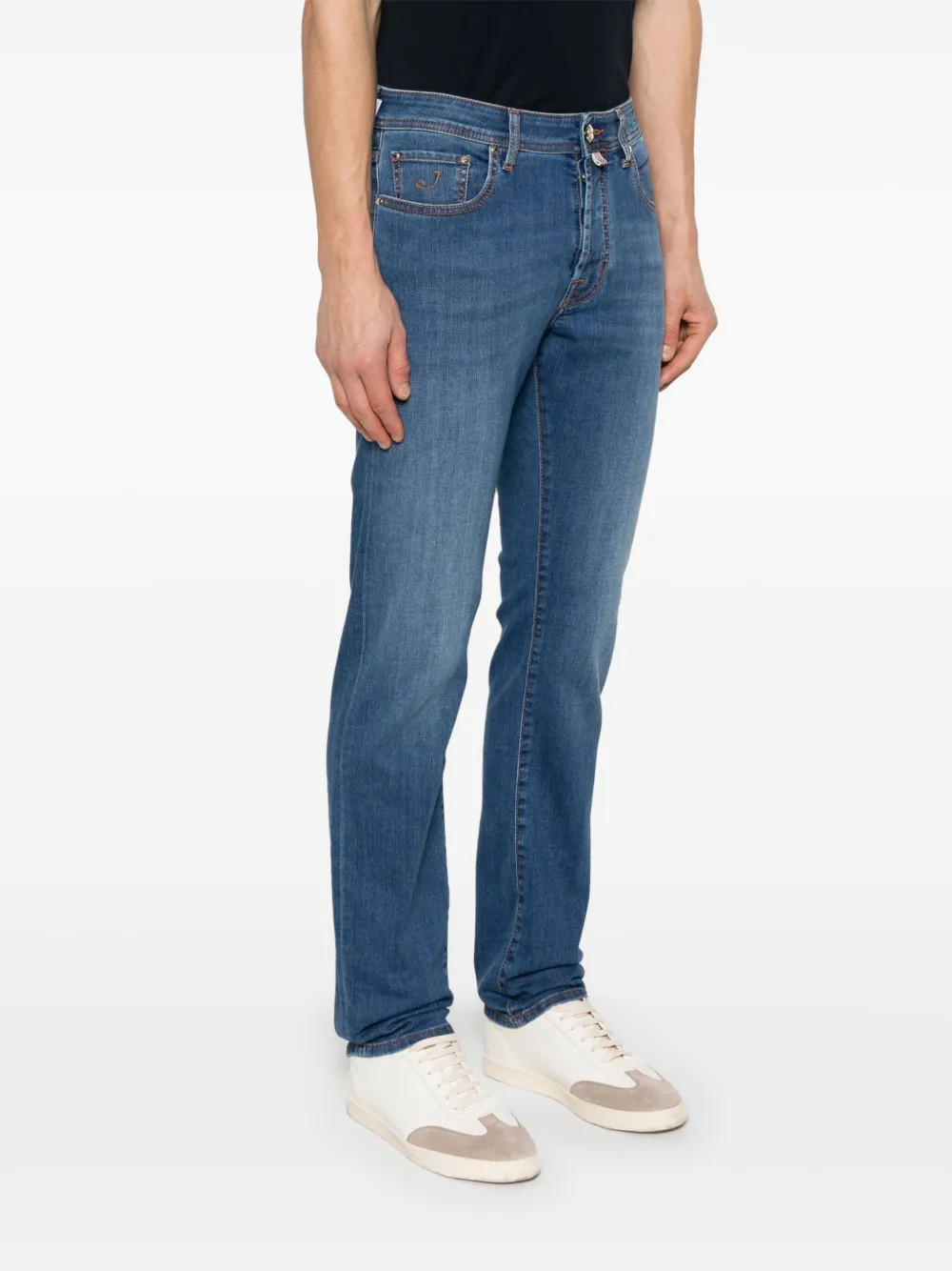 Джинсы с 5 карманами, зауженного кроя, сине-голубой деним в винтажном стиле (10 унций).