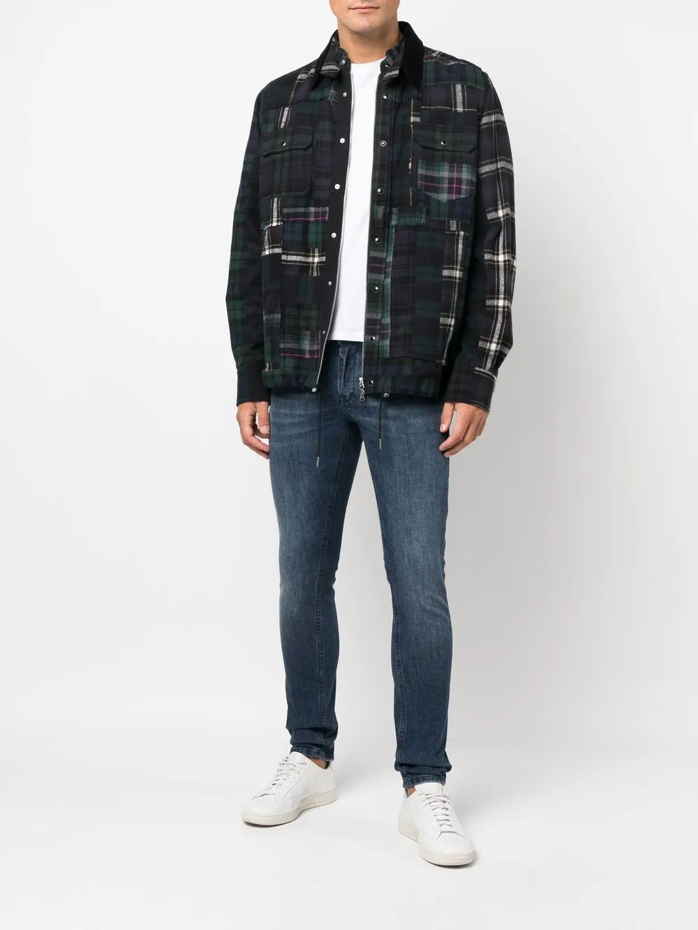 Петли для ремня, застежка на молнии и пуговице спереди и пять карманов.