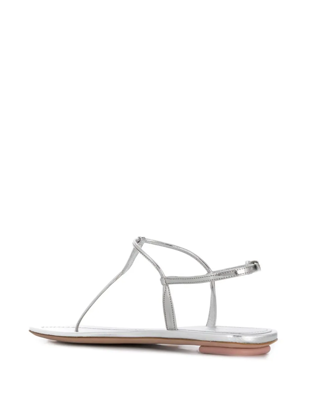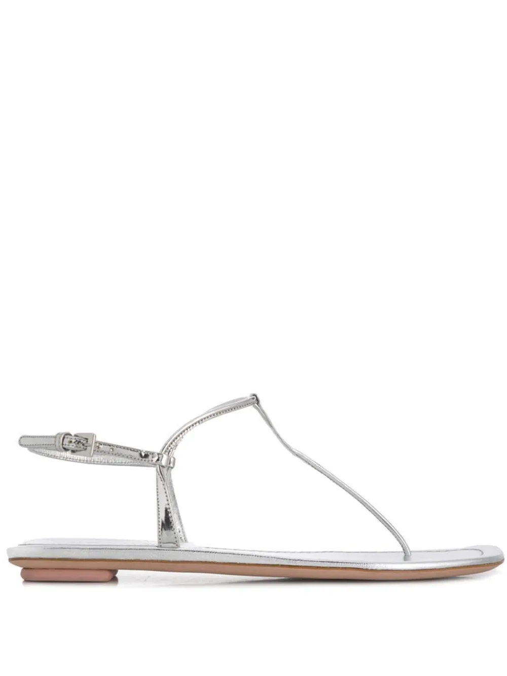 Итальянский дом Prada (Прада) был основан в 1913 году. Уже более века он находится среди лидеров индустрии моды. Стиль бренда всегда узнаваем: продуманный дизайн и превосходное качество - его главные достоинства. В новую коллекцию вошли серебристые сандалии с T-образным ремешком. Модель из ламинированной кожи с эффектом металлик имеет ремешок на щиколотке с пряжкой сбоку, стельку с тисненым логотипом, плоскую кожаную подошву. Сделано в Италии.