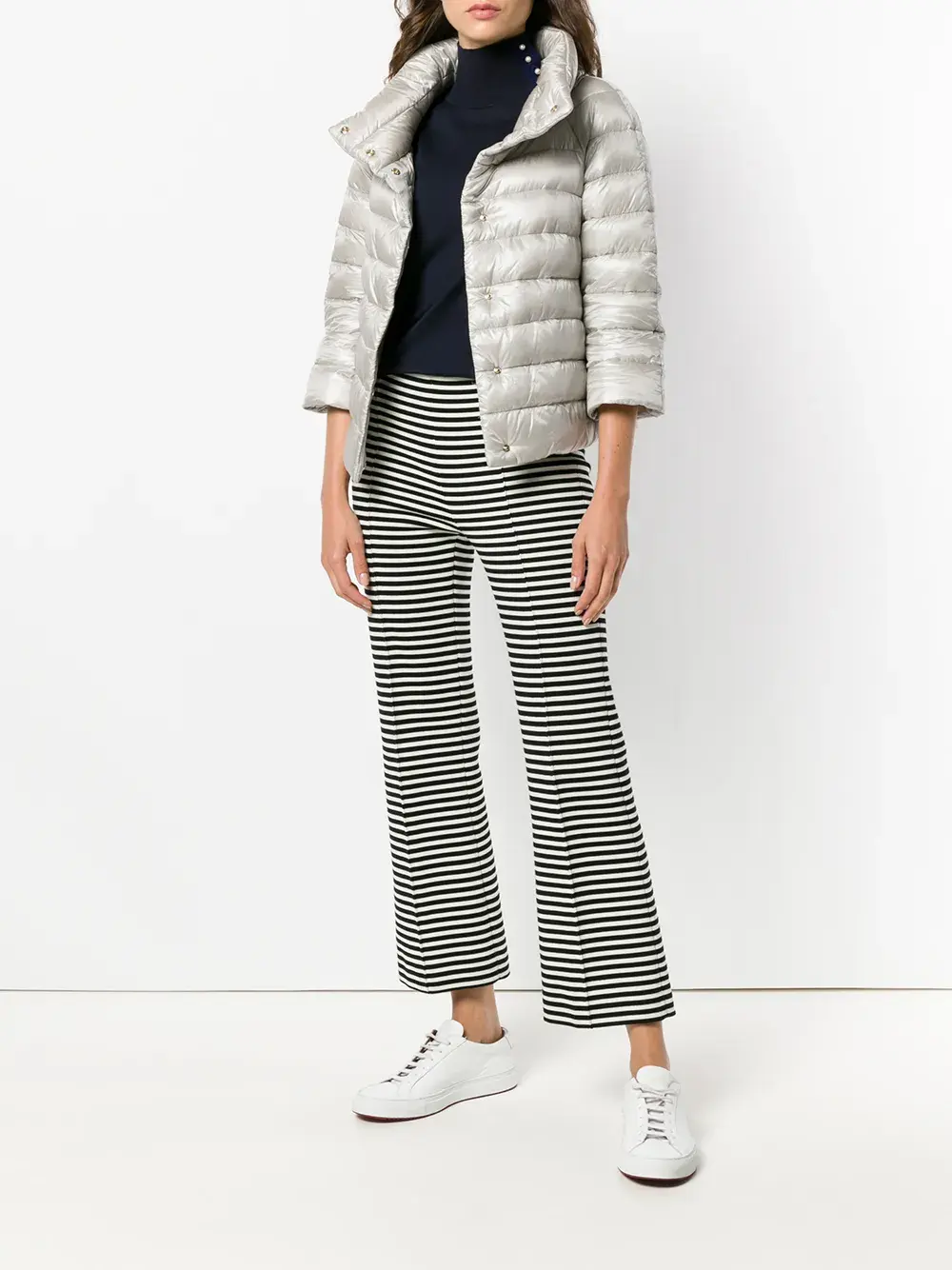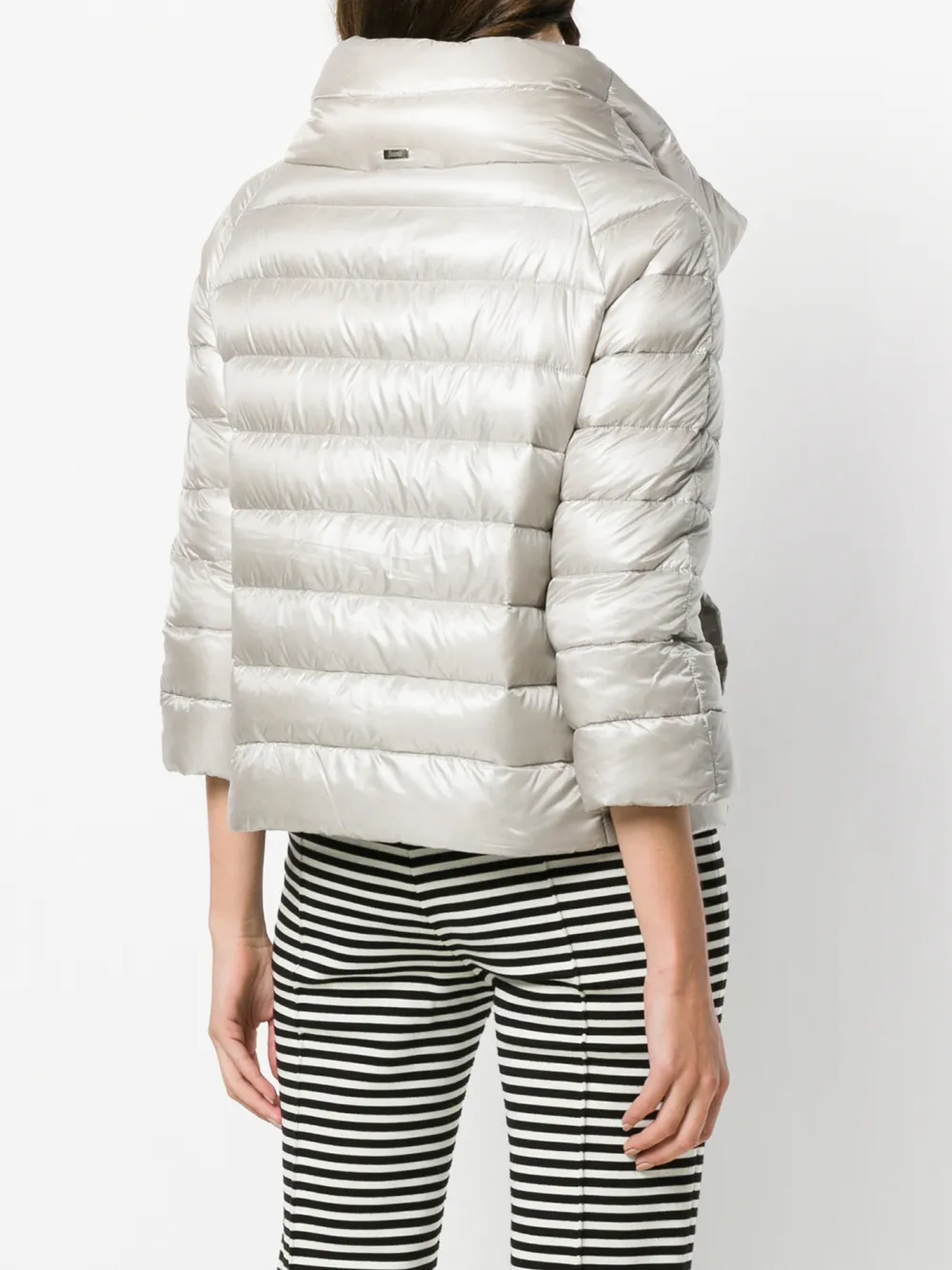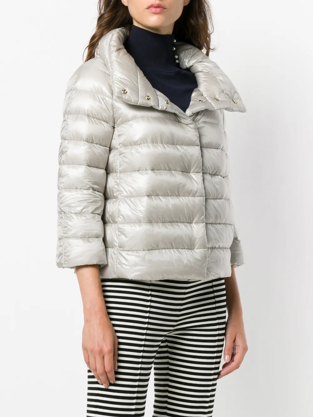 Пуховик на молнии от Herno. Круглый вырез, рукава три четверти, с обивкой, потайная застежка и внутренняя вставка с логотипом. Цвет: серый.