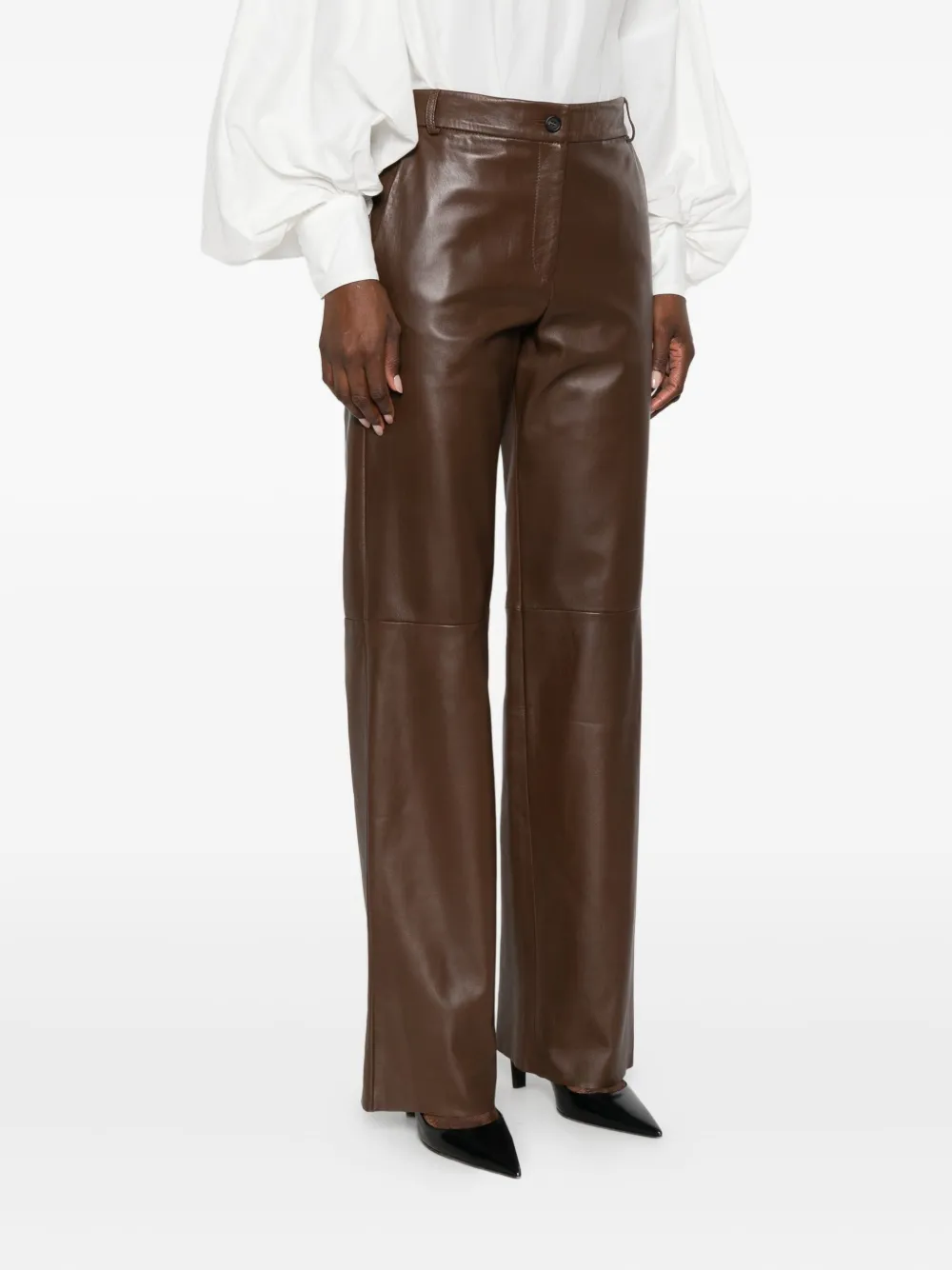 Кожаные брюки прямого кроя Antonelli, коричневый