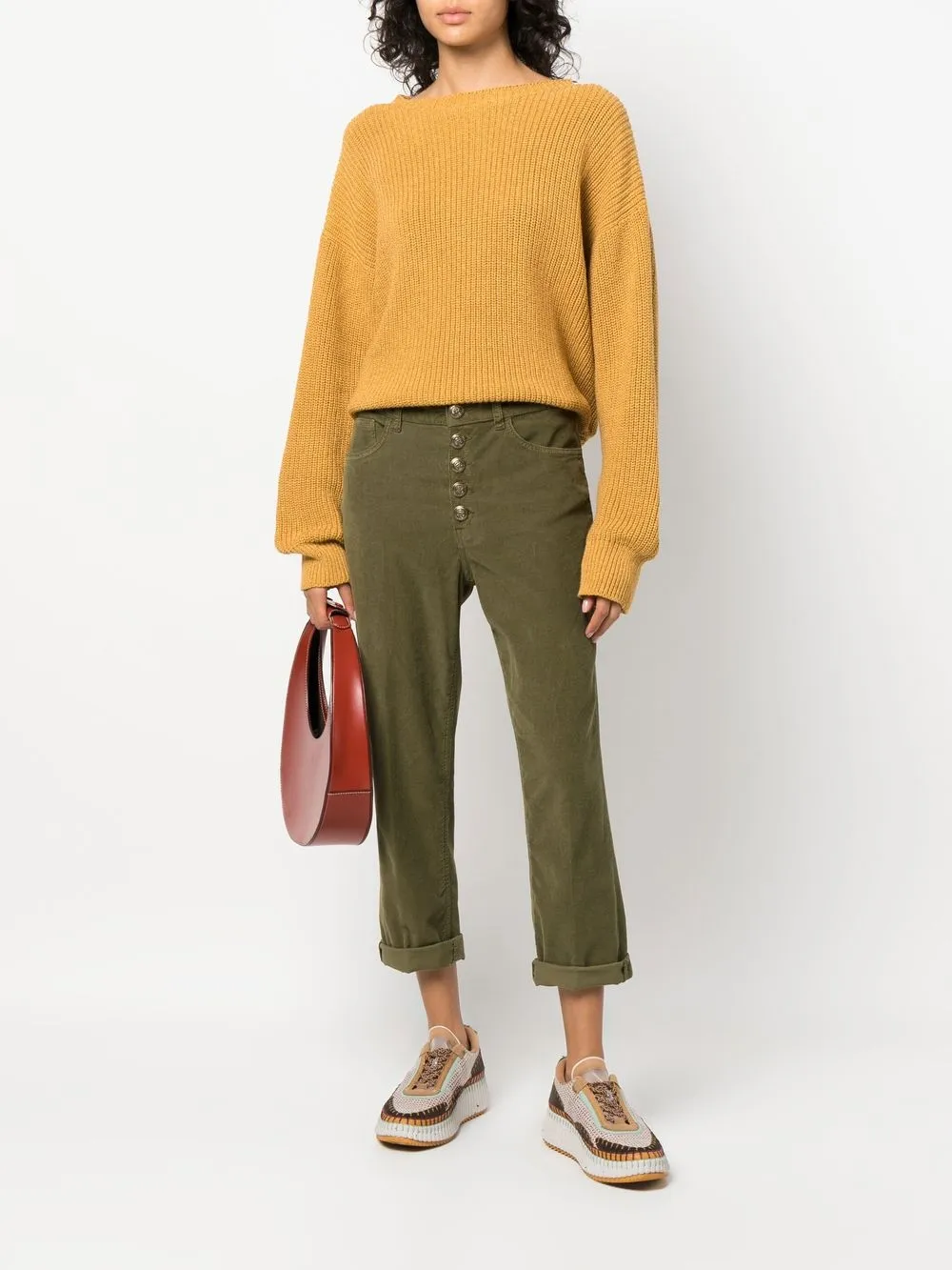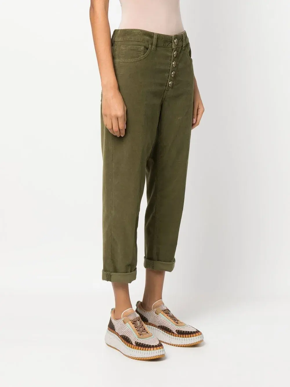 Смесь хлопка и лиоцелла, нашивка с логотипом сзади, застежка на пуговицах спереди, золотистые пуговицы, завышенная талия, прямой крой, пять карманов и петли для ремня.